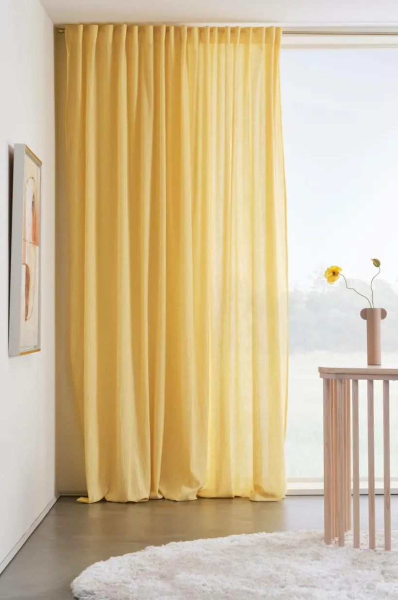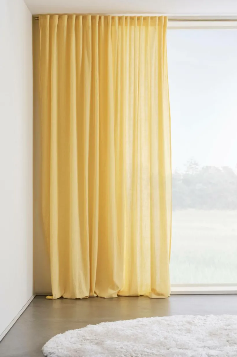 En extra bred gardinlängd i luftigt tyg med melerad effekt. Tyget är vävt i bomull och har en skönt avslappnad känsla. LUNI har påsytt multifunktionsband och gardinen kan hängas upp med fingerkrokar, kanal samt dold hälla. Tygets gramvikt 105 g/m².