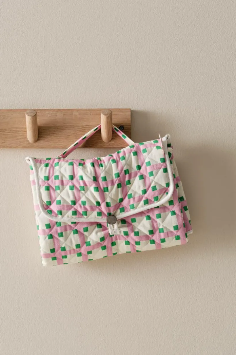 Skötbädden LUTZ är snygg och mångsidig. Den är hopfällbar och har ett handtag, vilket gör den perfekt för hemma eller på resan. Säkras med rem och knapp. Inuti finns sex fickor (14×21 cm) och en bottenficka (26X18 cm), perfekt för att organisera babysaker. Tillverkad av bomull med vattenavvisande beläggning och stoppning i polyester. Enkel att handtvätta.