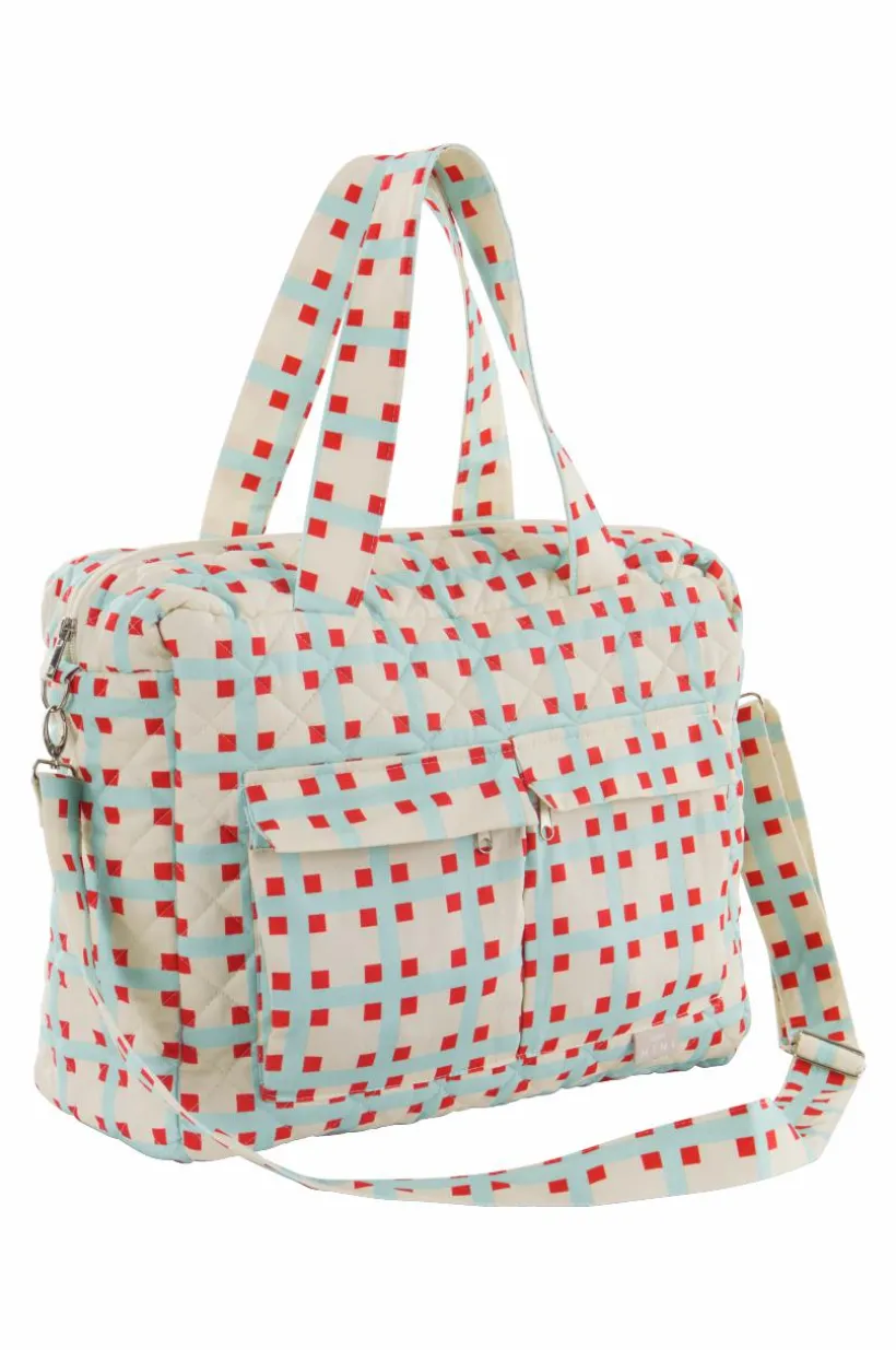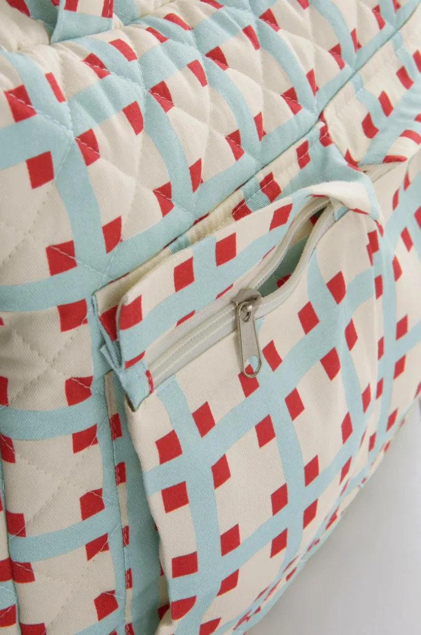 LUTZ mönstrad skötväska i perfekt blandning av funktion och stil. Lätt att komma åt när den hänger på barnvagnen. Två blixtlåsförsedda fickor framtill och fyra dolda, öppna fickor på insidan. Tillverkad av bomull med vattenavvisande ytbehandling. Två icke avtagbara handtag och en justerbar rem för mångsidig användning. Ytterligare remmar med krokar gör väskan bekvämare och gör att alla viktiga saker finns inom räckhåll. Idealisk för bekvämt föräldraskap.