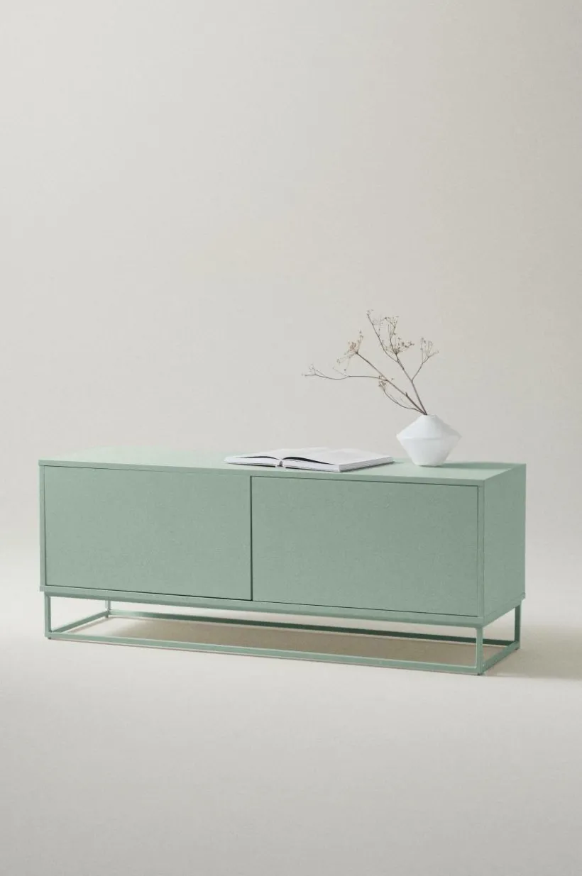 Stilren tv-bänk av MDF med stomme av metall. LYCKEBY har en avskalad och modern design med två praktiska luckor med pushfunktion. TV-bänken har hål baktill med plats för kablar. Viss montering krävs. Monteringsanvisning medföljer.