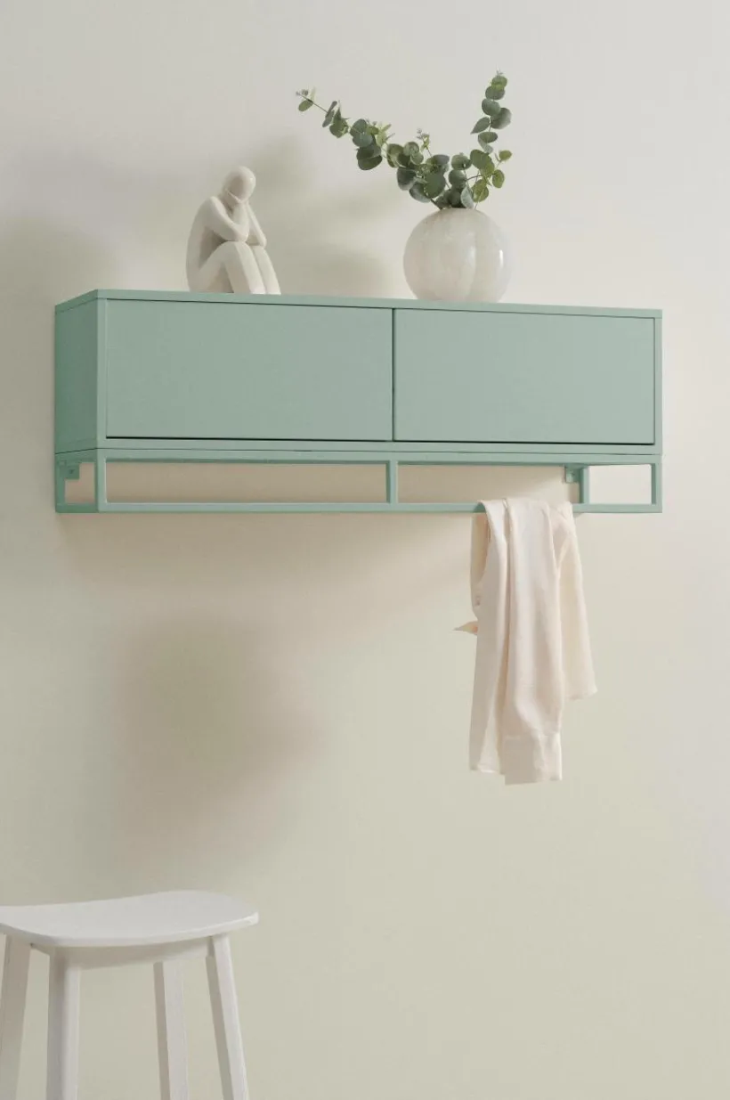 Väggskåp av MDF med kant undertill av metall. Den avskalade och stilrena vägghyllan har två dörrar som öppnas utåt och möts i mitten. Dörrarna har pushfunktion. Det gör att skåpet är helt slätt utan handtag och ändå lätt att öppna. Väggskåpet gör sig fint i hallen, kombinera gärna med LYCKEBY bänk under och få en enhetlig hallmöbel. Delarna av MDF har vattenbaserad lack. Metallkanten är av fyrkantsprofil med pulverlack. Viss montering krävs. Monteringsanvisning medföljer.