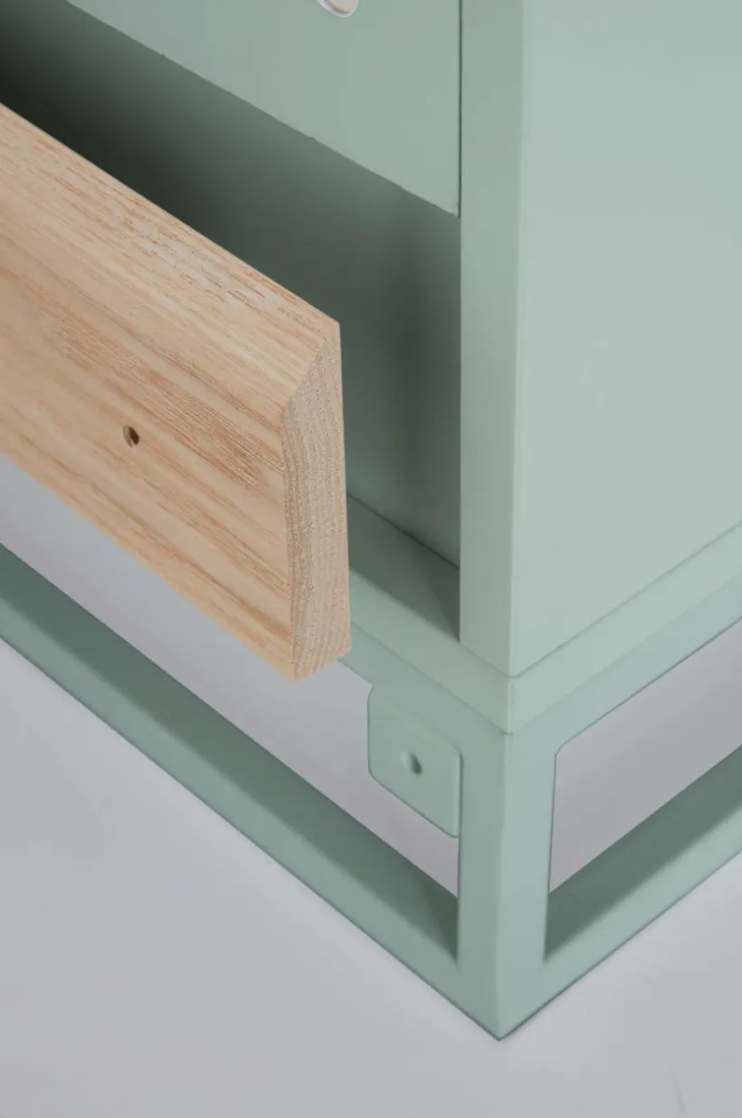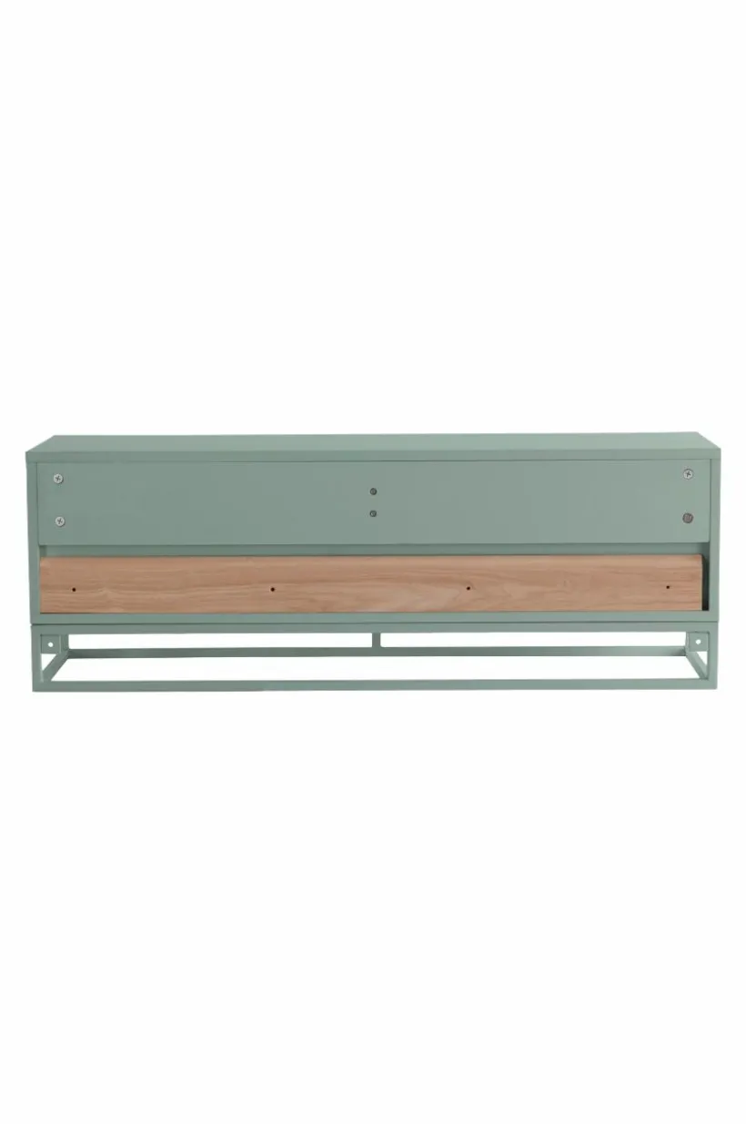Storlek: Höjd 35 cm, bredd 100 cm, djup 30 cm, hyllornas höjd 22 cm. Metallkanten höjd 10 cm.