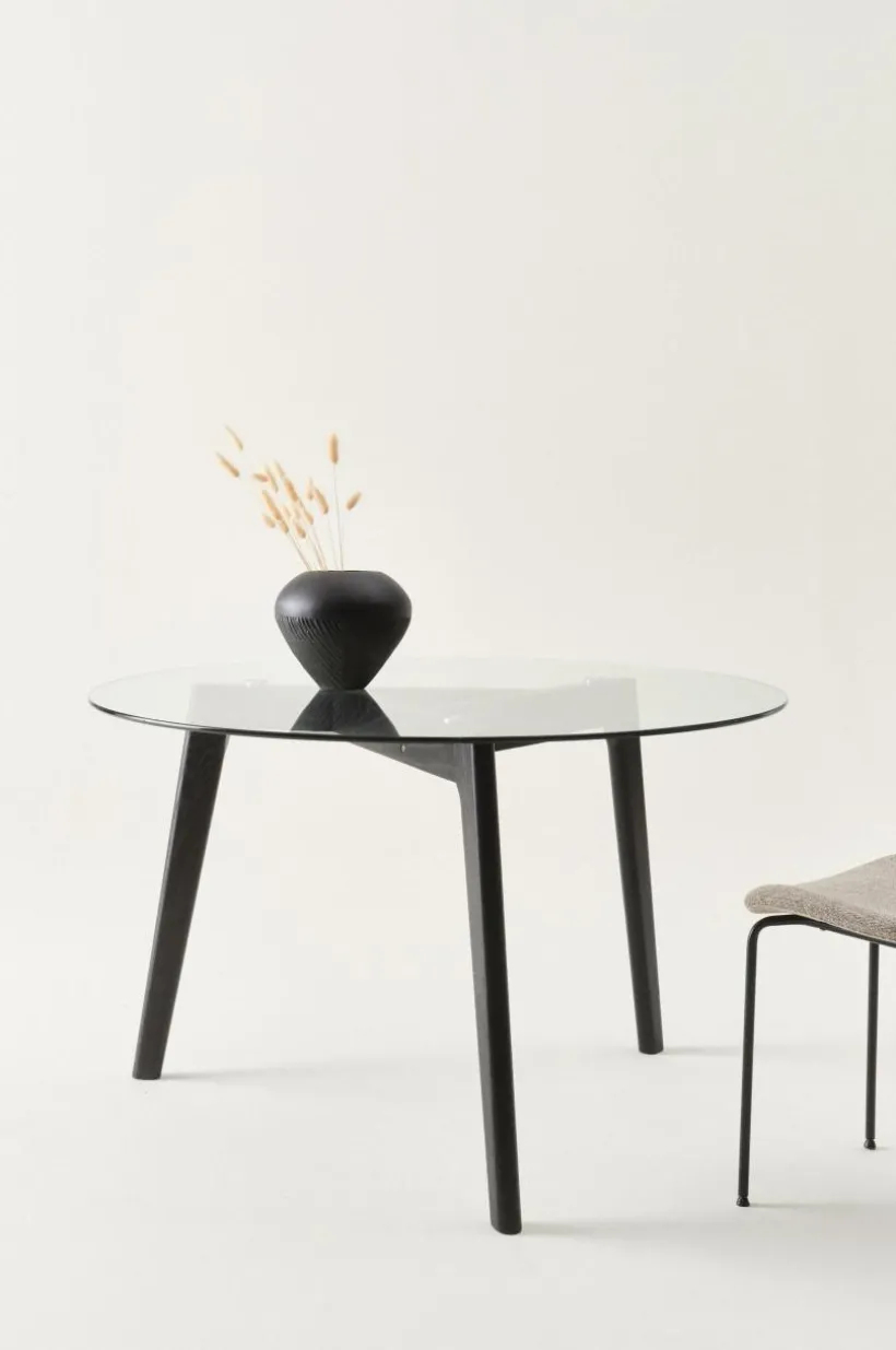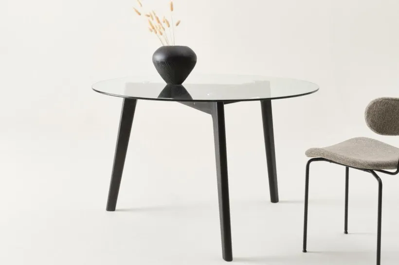 Tips/råd: Välj gärna en mönstrad matta till bordet som exponeras snyggt genom glasskivan.
