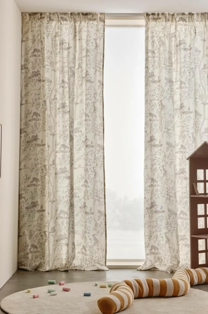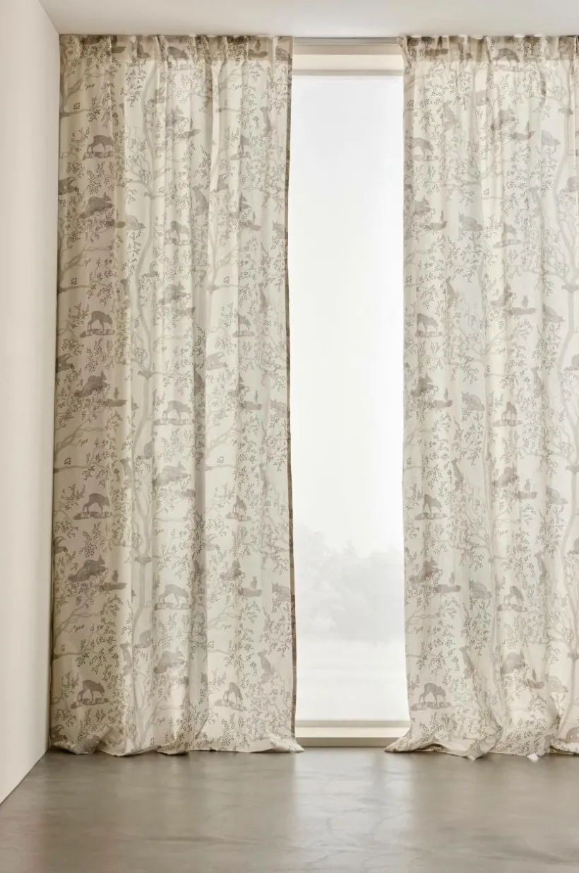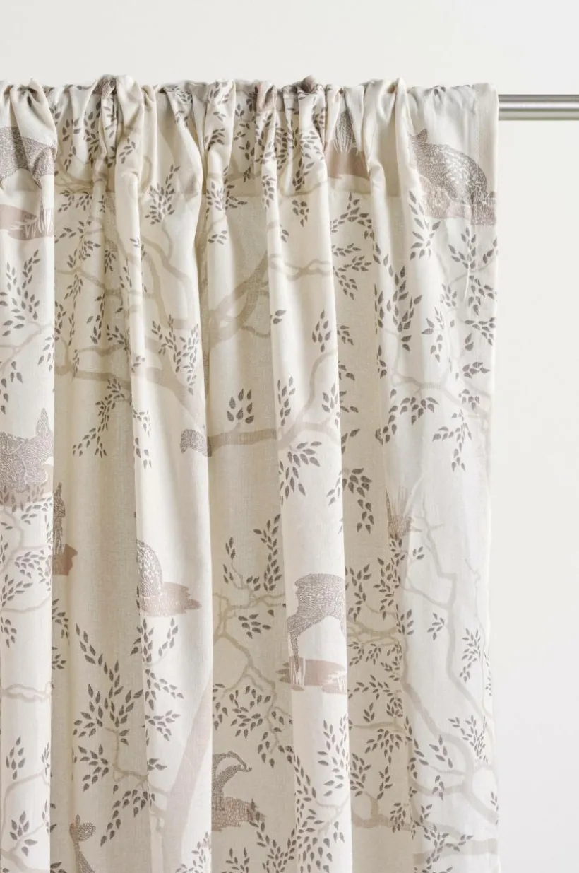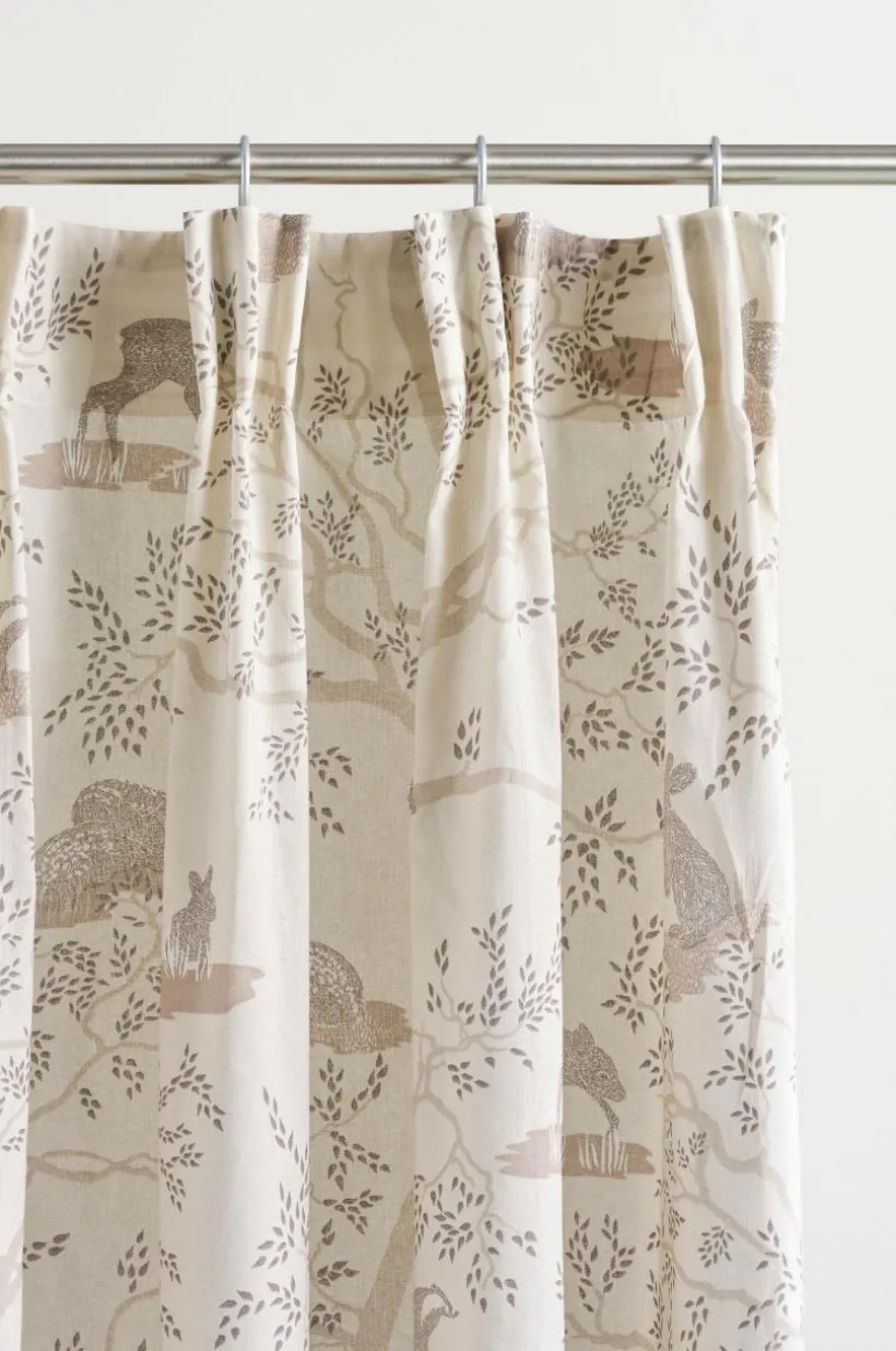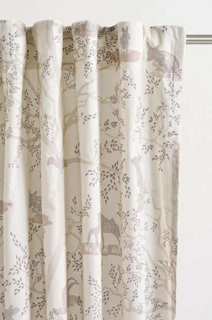 2-pack gardinlängder i bomull med tryckt mönster och mjuk yta. Med påsytt multifunktionsband. Gardinen kan hängas upp med fingerkrokar, kanal samt dold hälla.