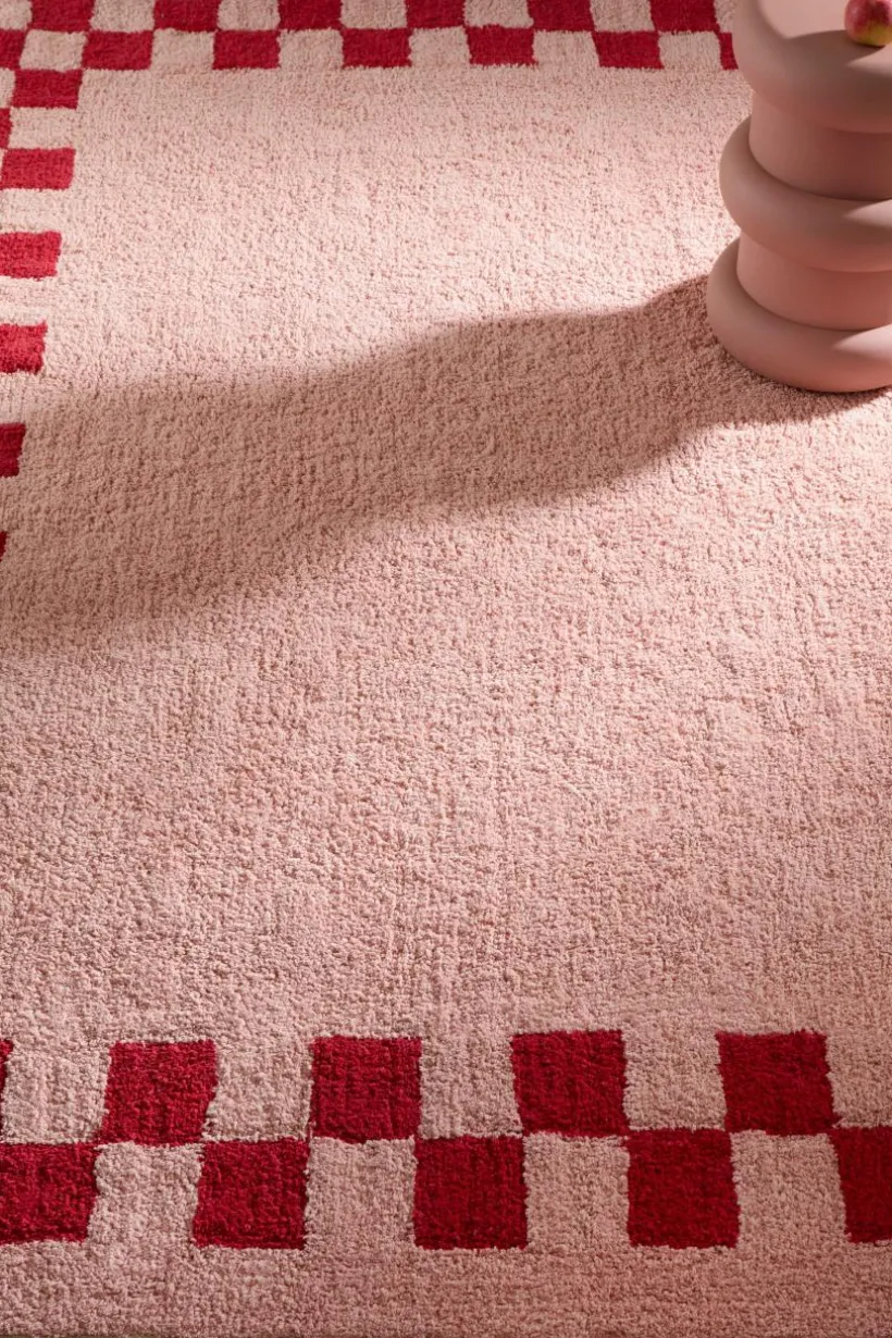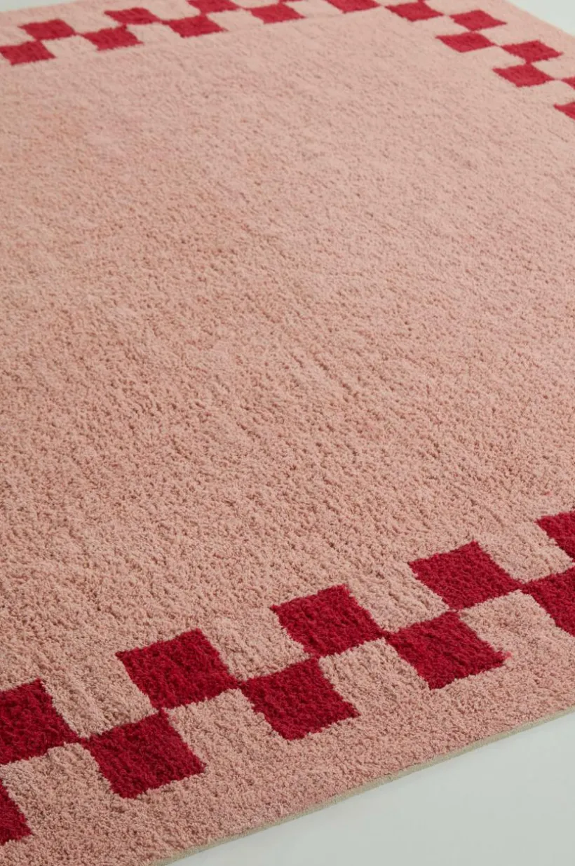 MAPLE luggmatta förvandlar vardagsrum, kontor eller sovrum med sin diskreta elegans. Den här stora mattan är tillverkad av bomull och har ett enfärgat mönster som accentueras av en smakfull rutig kant, som smälter sömlöst in i olika inredningsteman för att göra ditt hem mer elegant och personligt.