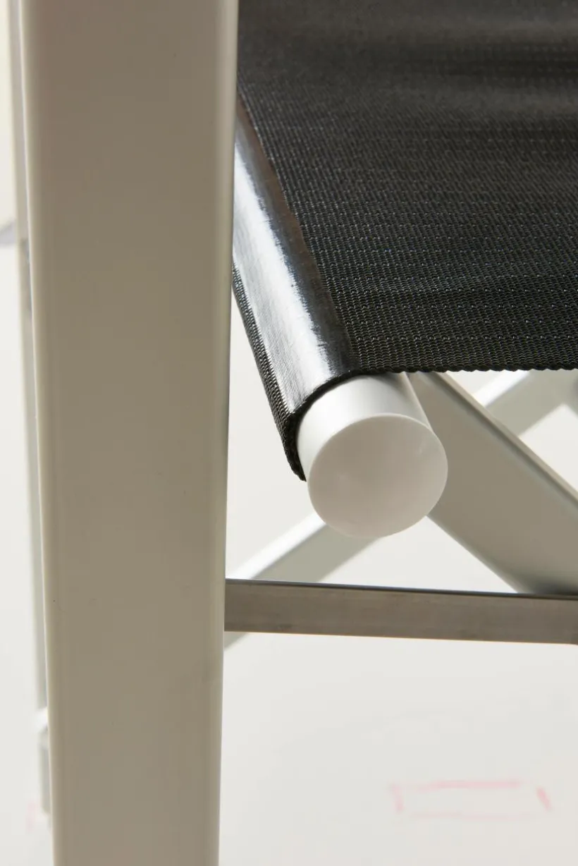 Bekväm däckstol/regissörstol tillverkad i italiensk originaldesign som du annars kan njuta av på den Italienska Rivieran. MARCELLA är även tillverkad i Italien. Ramen av aluminium är tåligt, lättskött och väderbeständigt. Textilene är vävd av slitstark polyestertråd som är PVC-behandlad i Italien. Däckstolen MARCELLA väger lite vilket gör den lätt att flytta runt. Stolen tar minimalt med utrymme när den är hopfälld.