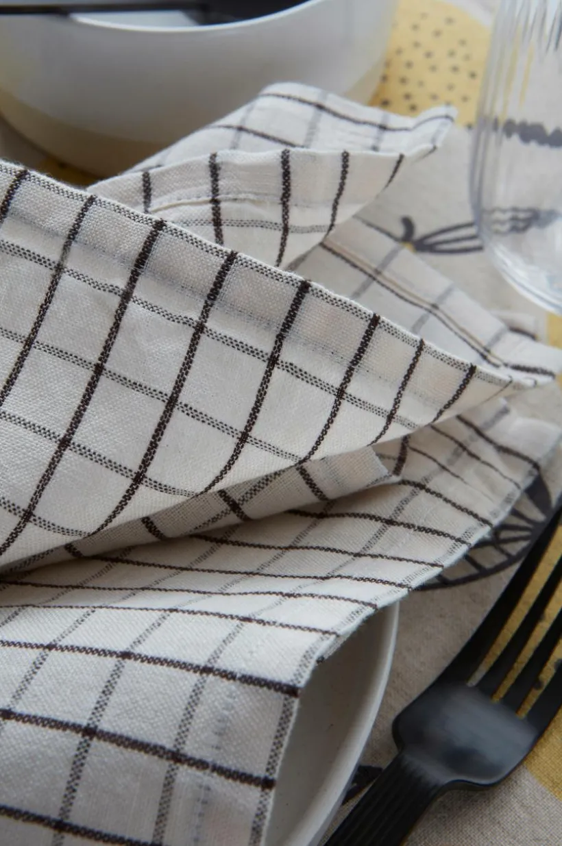 8-pack servetter i rutigt tyg av bomull och lin. Linnemixen ger en rustik kvalité som är lika härlig slät som ostruken. Tyget är plaggtvättat vilket innebär att det tvättats före sömnad och det gör kvalitén extra behaglig och mjuk. De garnfärgade rutorna har härlig, lantlig charm och passar in i de flesta stilar.