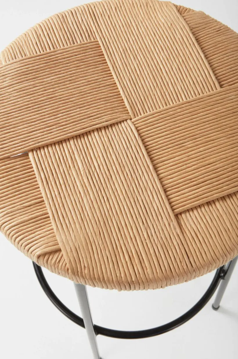Barpall av järn med sits av naturligt papperssnöre som flätats i ett snyggt mönster. Stommen till sitsen är av FSC-märkt björk. Pallen har bekväma fotpinnarna som ger skön sittställning. MARINO är en klassisk pall, som är hög nog att passa vid din köksö. Underredet av järn är pulverlackerat.