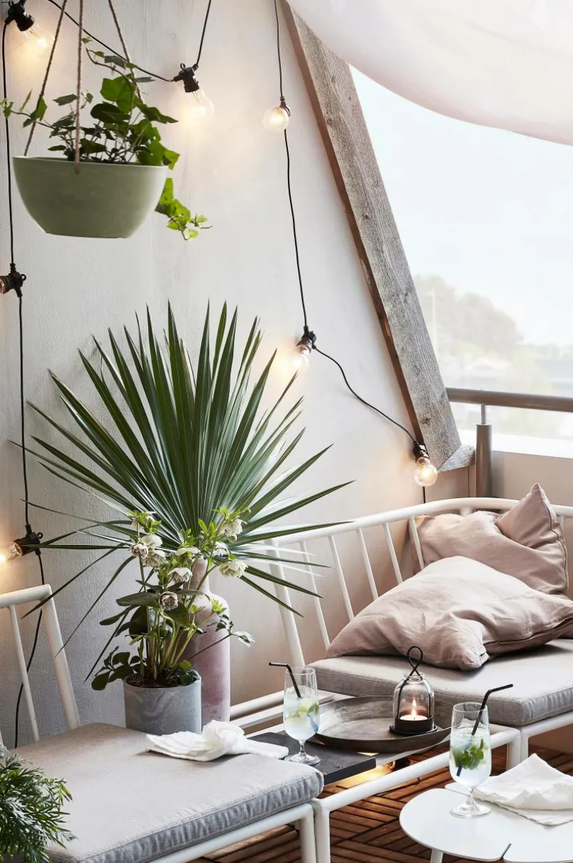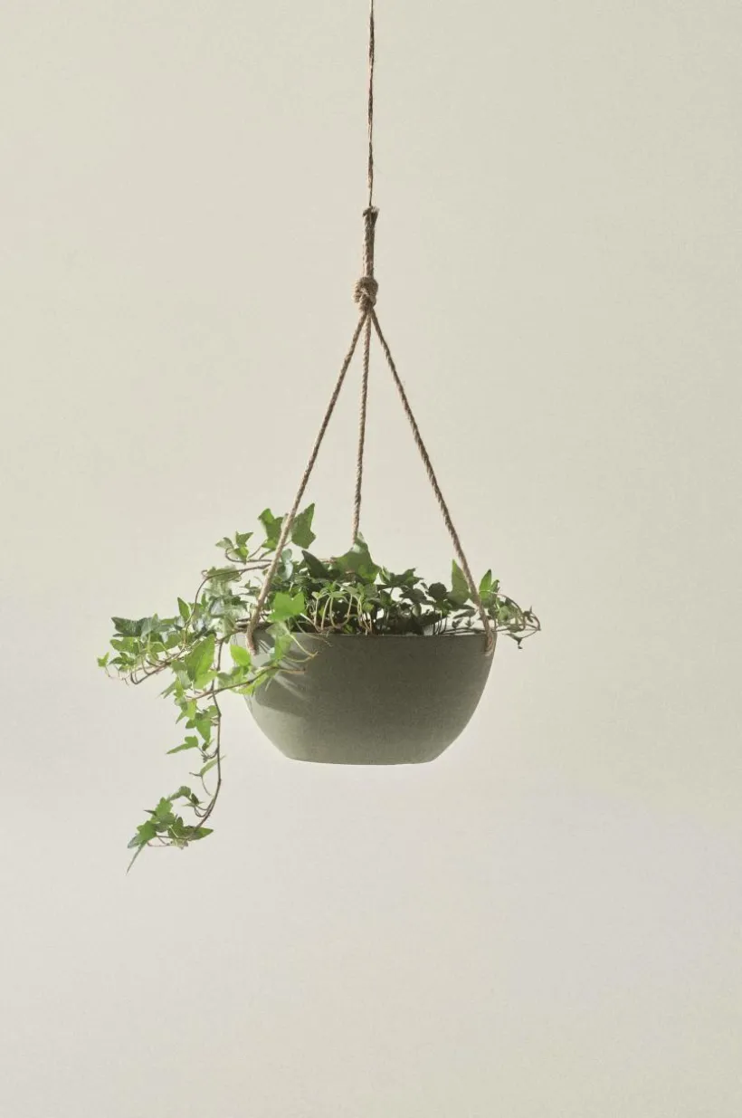 Ampelkrukan har snören för upphängning. Snöret är tillverkat av jute, som är ett naturmaterial. Jute påverkas av sol och vatten och bryts ner med tiden.