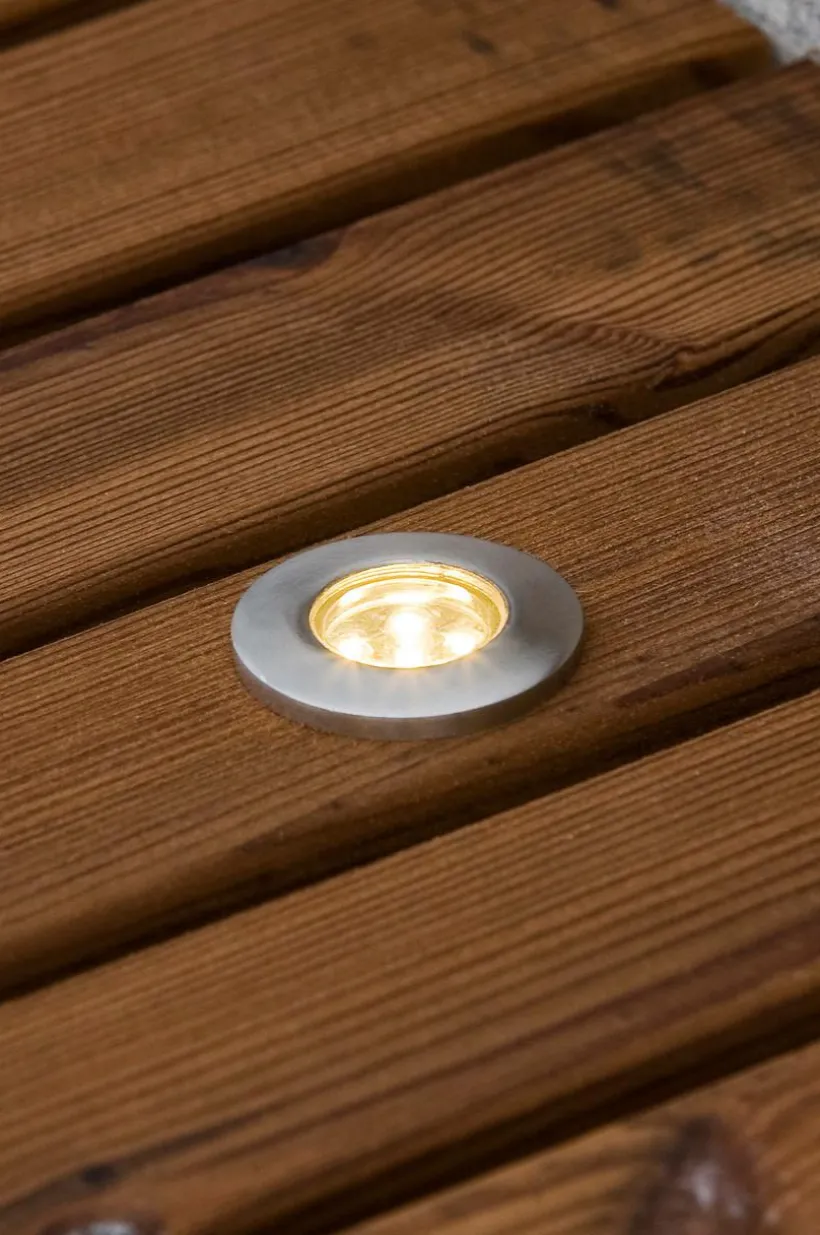 Markspot Mini 3-pack . Tillverkad i rostfritt stål och har en plan topp. Detta set innehåller 3st markspotar. Led 0,36w/ljuskälla. Drivs med 12v transformator.