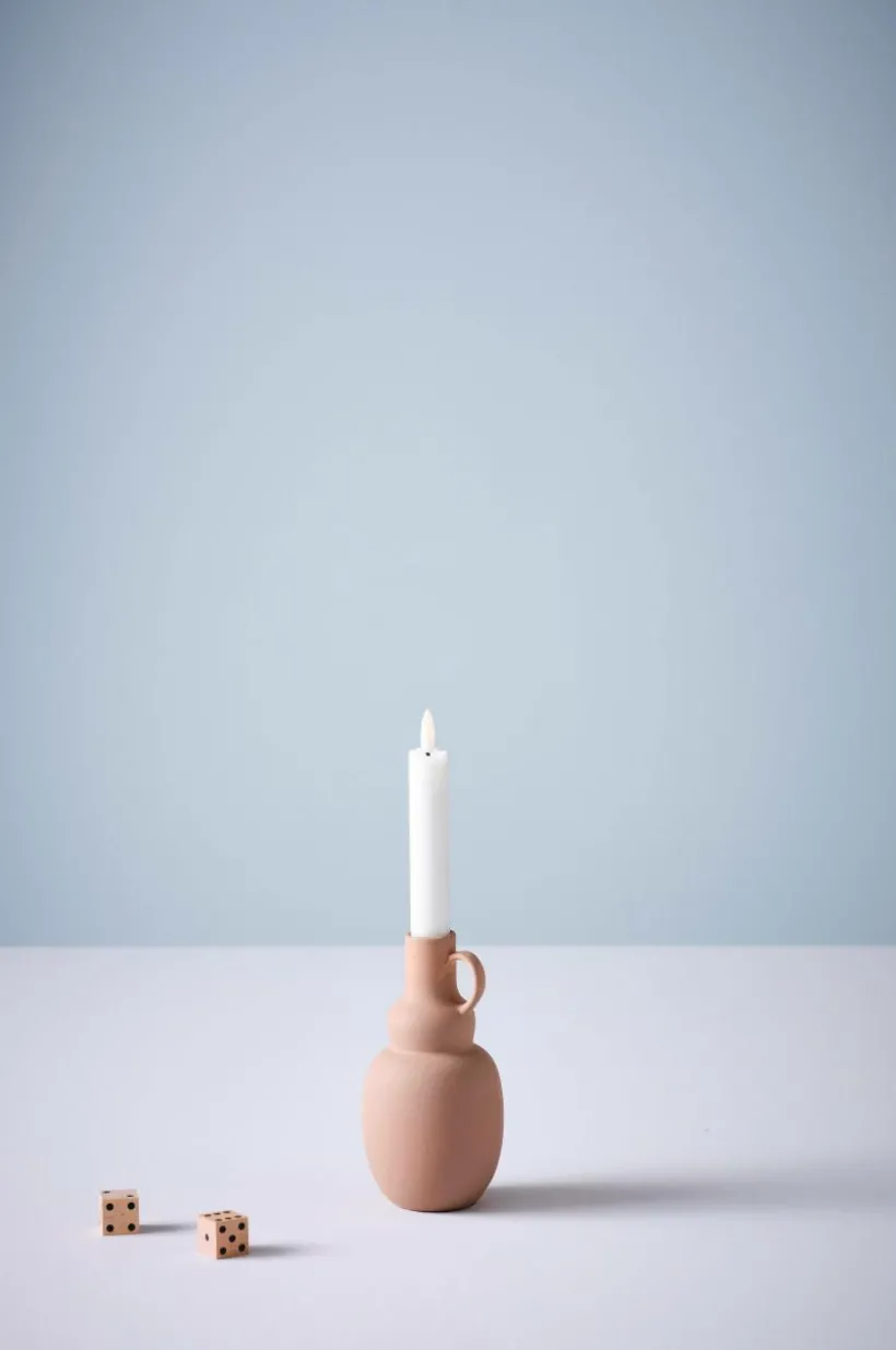Ljusstake av keramik. En söt liten ljusstake som blir en fin detalj i ditt hem. Ljusstaken är handgjord vilket gör varje exemplar unikt. Ljus medföljer ej.