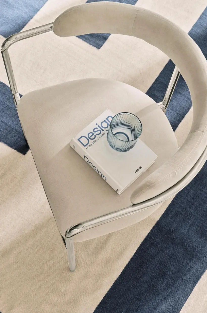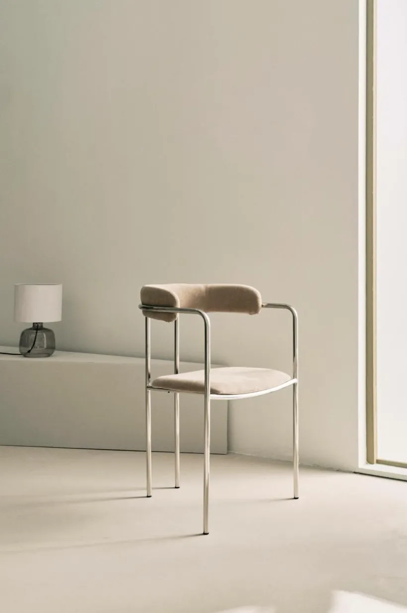 MARYLAND är en stilfull och tidlös karmstol, en elegant kombination av kromat stål och mjukt chenilletyg. Karmstolens sits och nätta ryggstöd har en stomme av MDF som är bekvämt mjukstoppade och har fin chenilleklädsel. MARYLAND är en stol som du med fördel kan placera för dekoration på öppen yta, i en hall eller i ditt vardagsrum. Den gör sig fint i sovrummet. Att möblera med MARYLAND runt ett matchande matbord ger dig en sober och elegant matsal, där långa härliga middagar med vänner kan avnjutas.