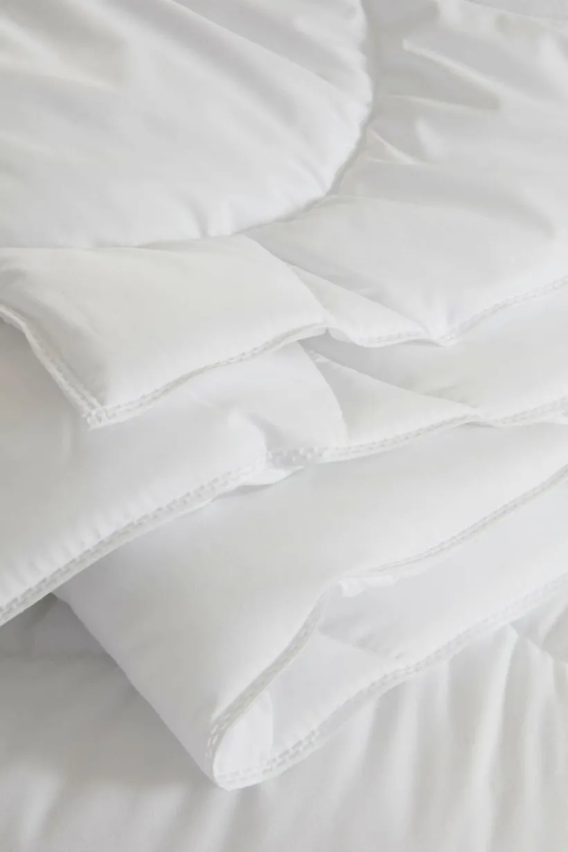 Täcke MAURI ger en svalkande komfort som är perfekt på sommaren eller om du är varm när du sover. Den quiltade designen håller fyllningen på plats. Yttertyget är vävt. Extra brett, passar bekvämt i en dubbelsäng.