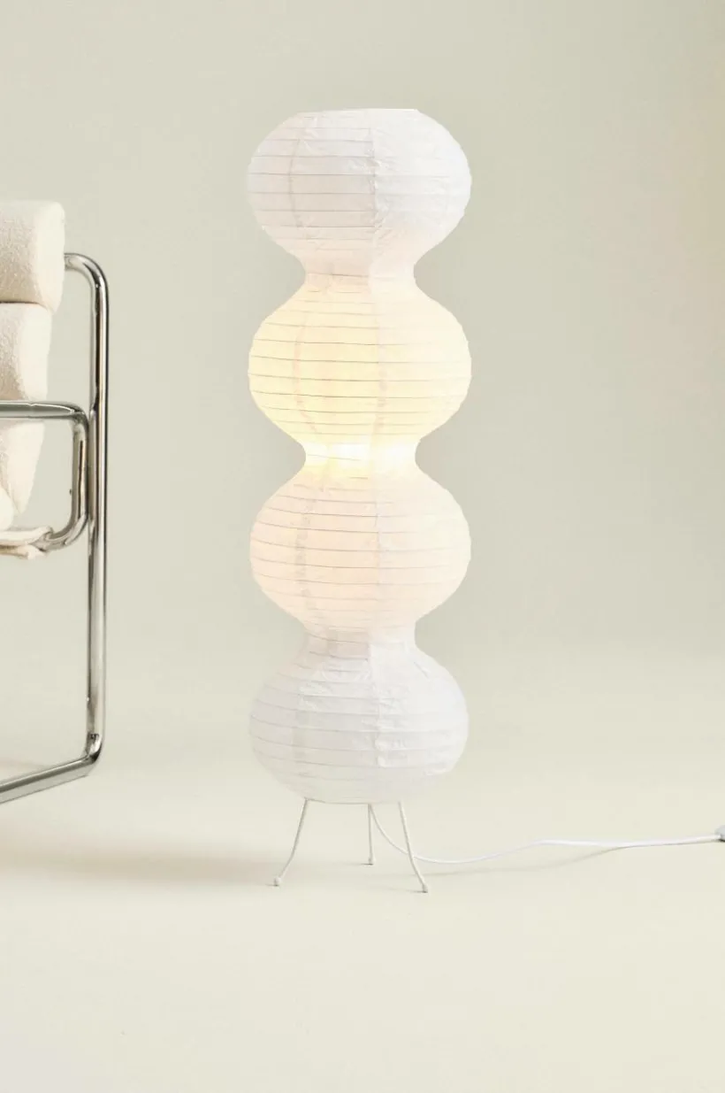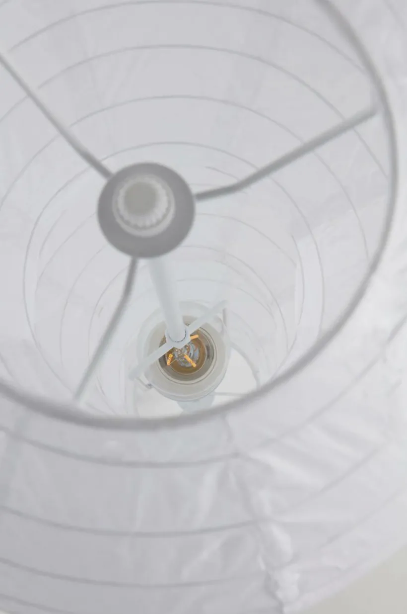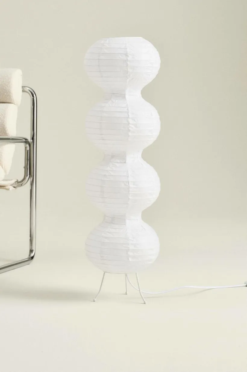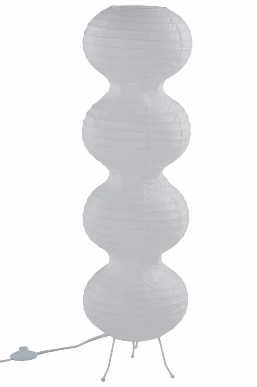 Golvlampa med lampskärm av ljust papper som sprider att mjukt, diffust sken. Lampan är trebent och har nätt underrede av metall samt metallstomme i skärmen. MEDOC är en mysig lampa, både i ditt vardagsrum och i sovrummet eller hallen. Vit textilsladd förhöjer känslan. Lampan har strömbrytare på sladden och är ojordad, klass 2.