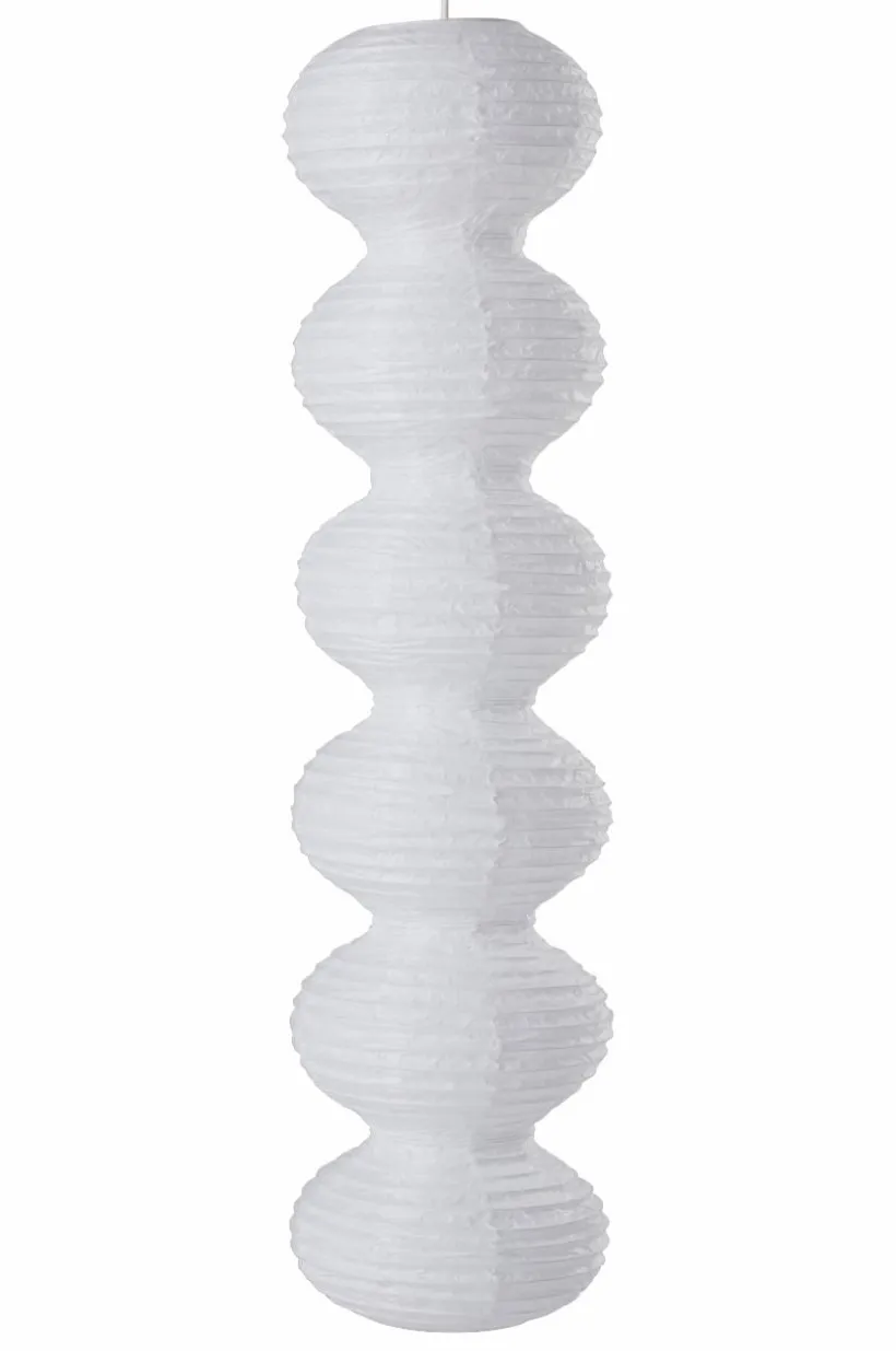 Taklampa med lampskärm av ljust papper som sprider att mjukt, diffust sken. Lampan har metallstomme i skärmen. MEDOC är en mysig lampa, både i ditt vardagsrum och i sovrummet eller hallen. Vit textilsladd förhöjer känslan. Takkopp av plast.