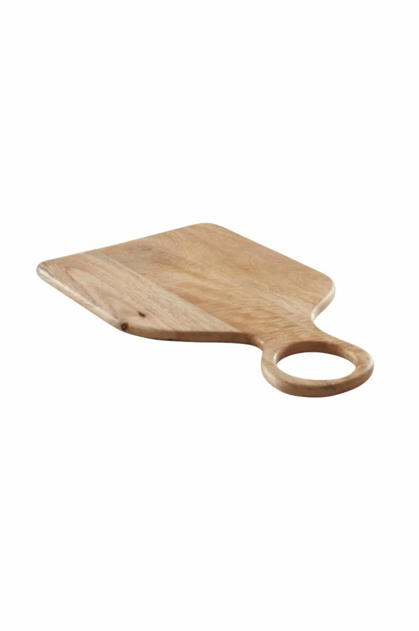 Skärbräda av FSC-certifierat mangoträ med vacker ådring. Den mjuka ytan är obehandlad och varje skärbräda är unik då träet har naturliga variationer. Vacker, asymmetrisk form med behagligt rundade kanter. Handtaget har ett lite större hål. Skärbrädan är ett praktiskt och snyggt uppläggningsfat när du serverar både frukost och middag.