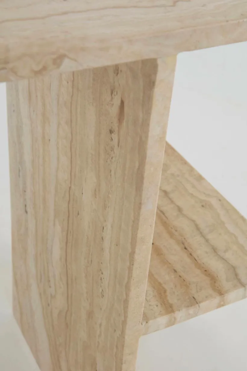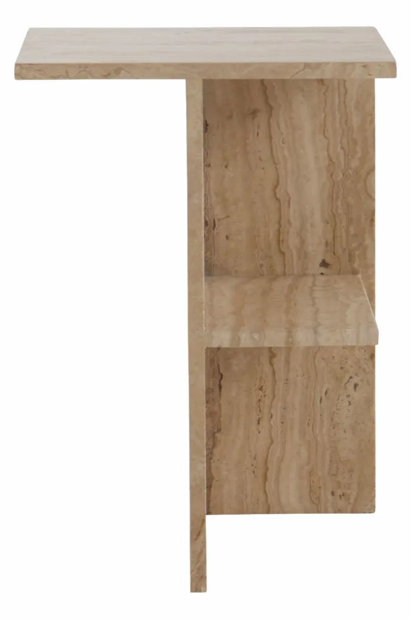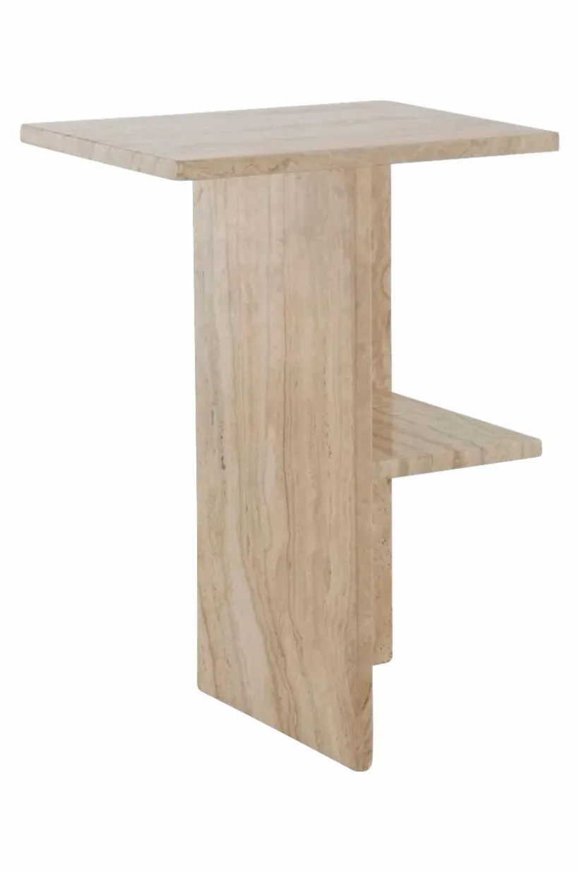 MELETO sängbord är tillverkat av fin travertin, med naturlig marmorering och unikt mönster. Små avvikelser i färg och textur bidrar till dess charm. En hylla på höger sida erbjuder praktisk förvaring. Placeras bäst på vänster sida av sängen. Mångsidig användning som sidobord i vardagsrummet. Inkluderar tippskydd för extra säkerhet. Förhöj ditt sovrum med MELETOs eleganta hantverk.