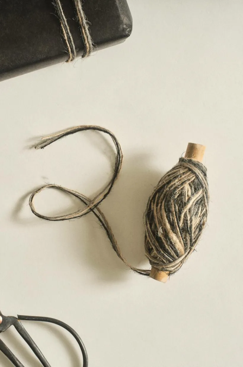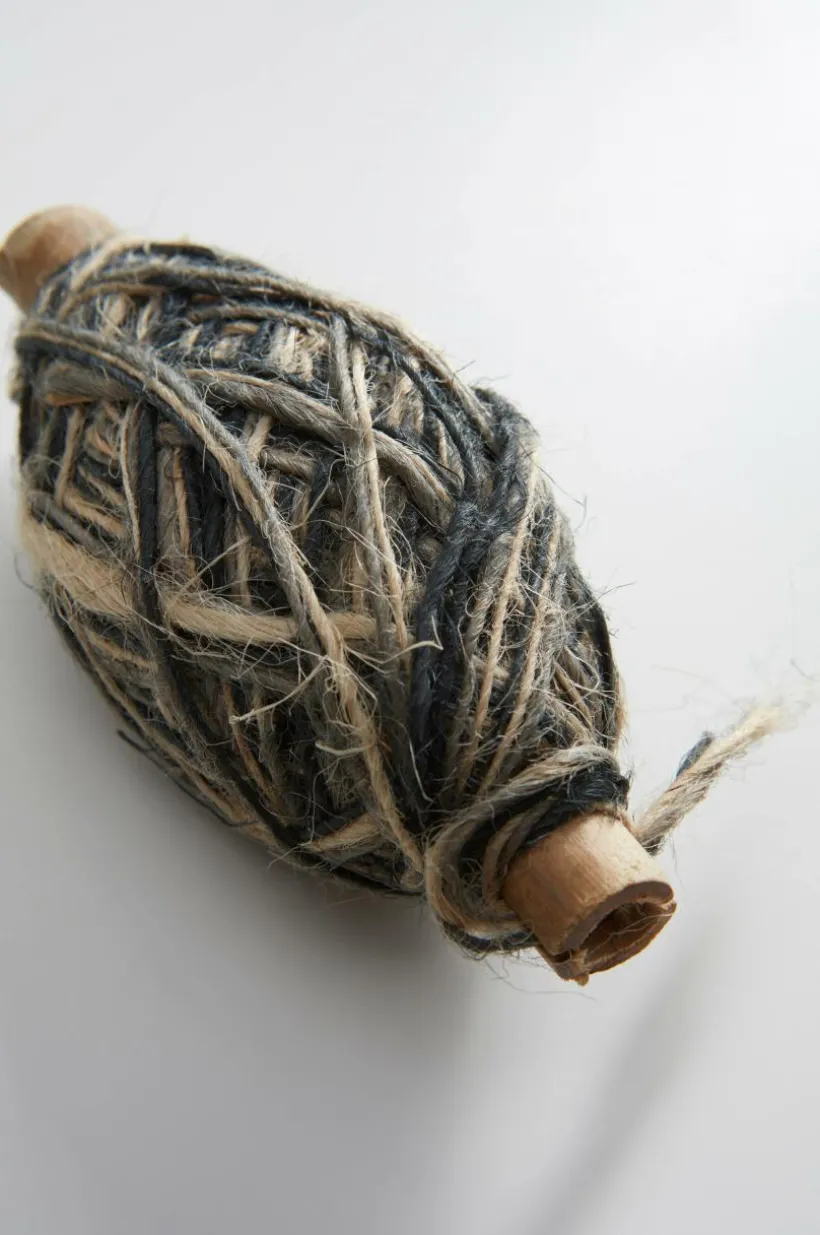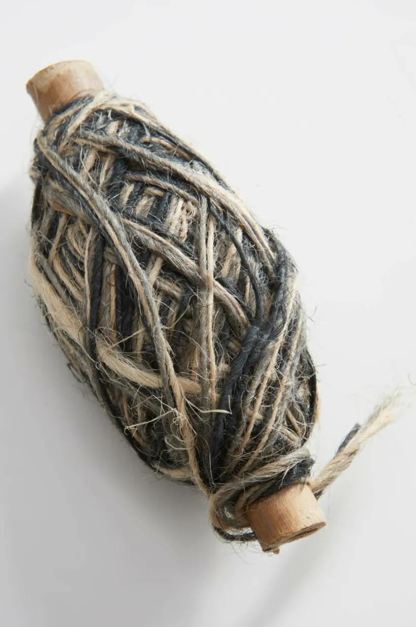 Tvåfärgat jutesnöre på trärulle. Jutesnöre ger en skön vintagekänsla till dina kreativa projekt och kan användas till presenter och blomsterarrangemang och allt där emellan. Rullen innehåller 50 meter.
