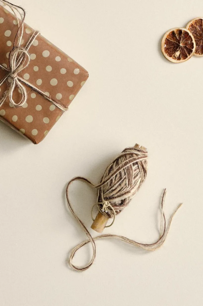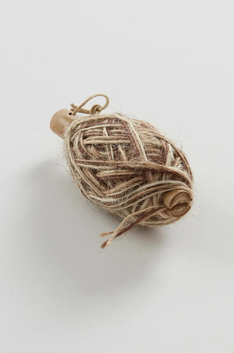 Tvåfärgat jutesnöre på trärulle. Jutesnöre ger en skön vintagekänsla till dina kreativa projekt och kan användas till presenter och blomsterarrangemang och allt där emellan. Rullen innehåller 50 meter.