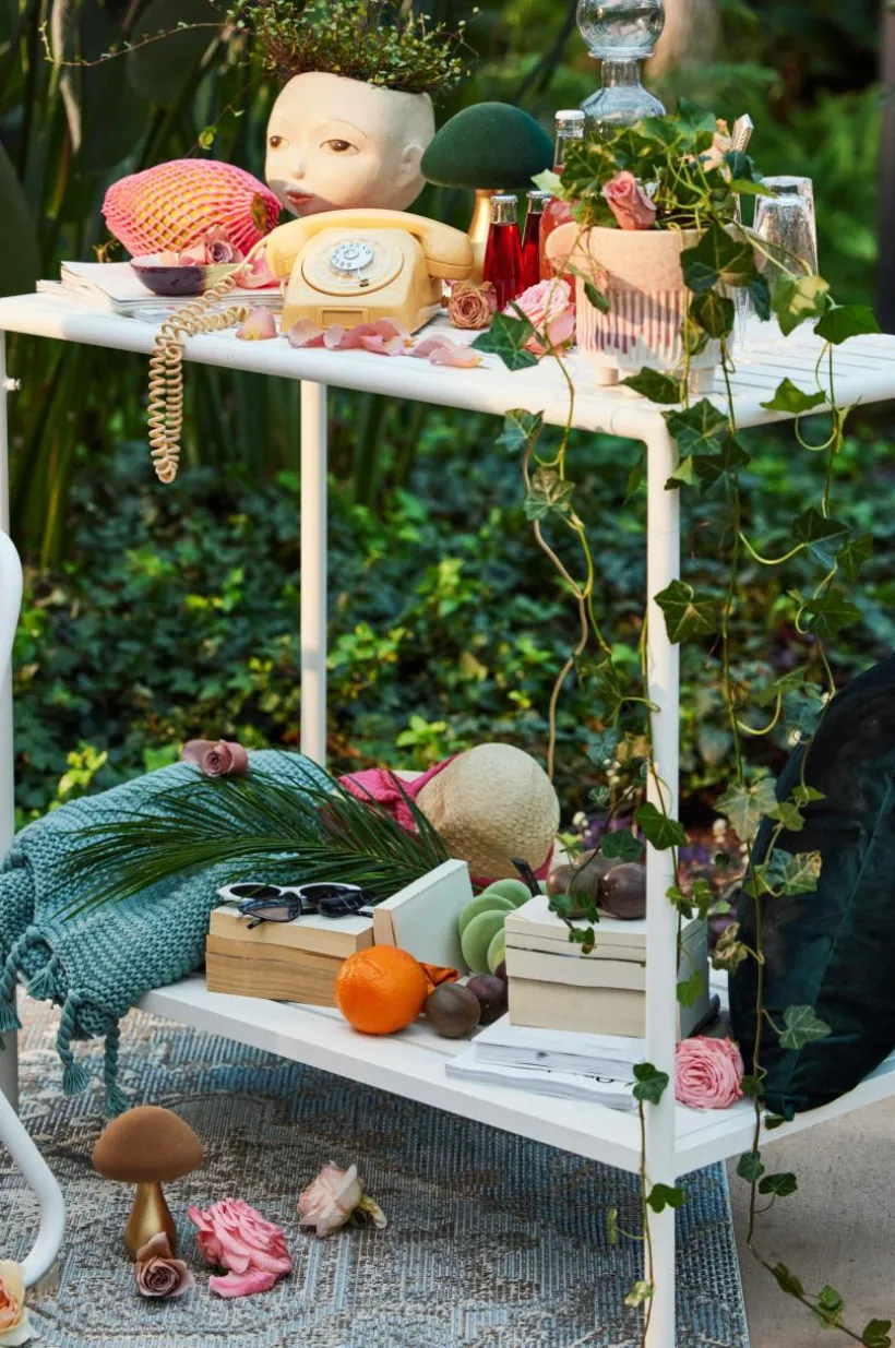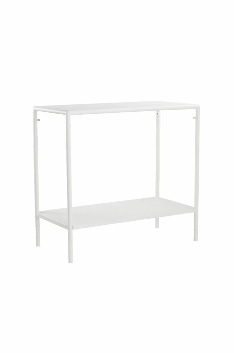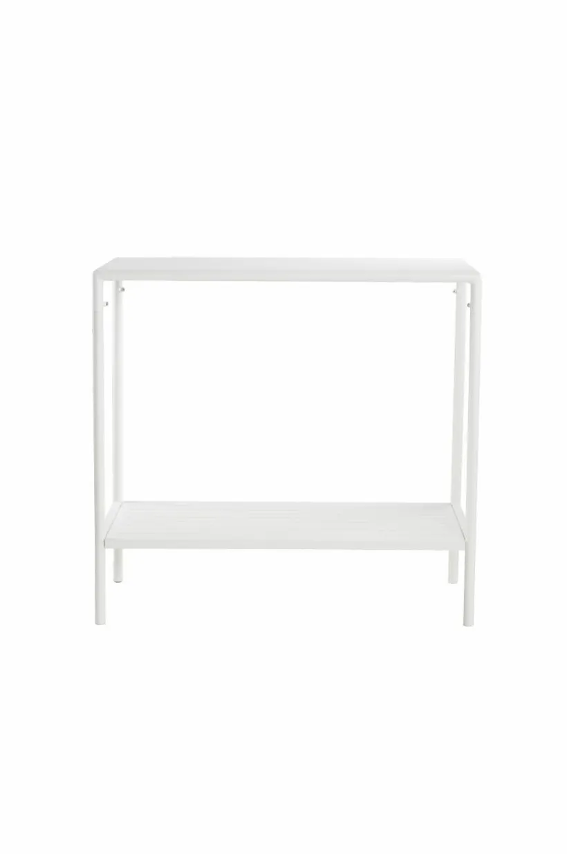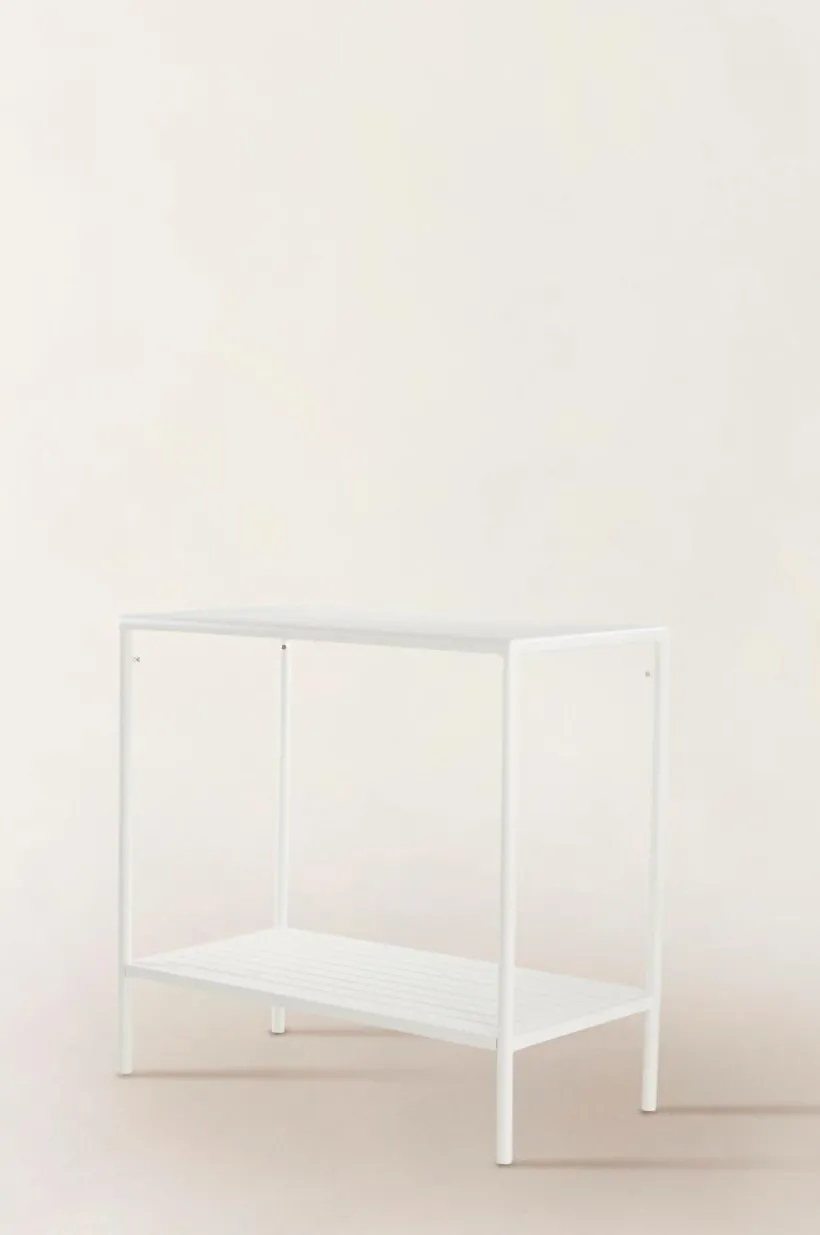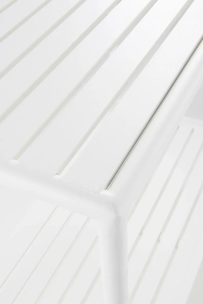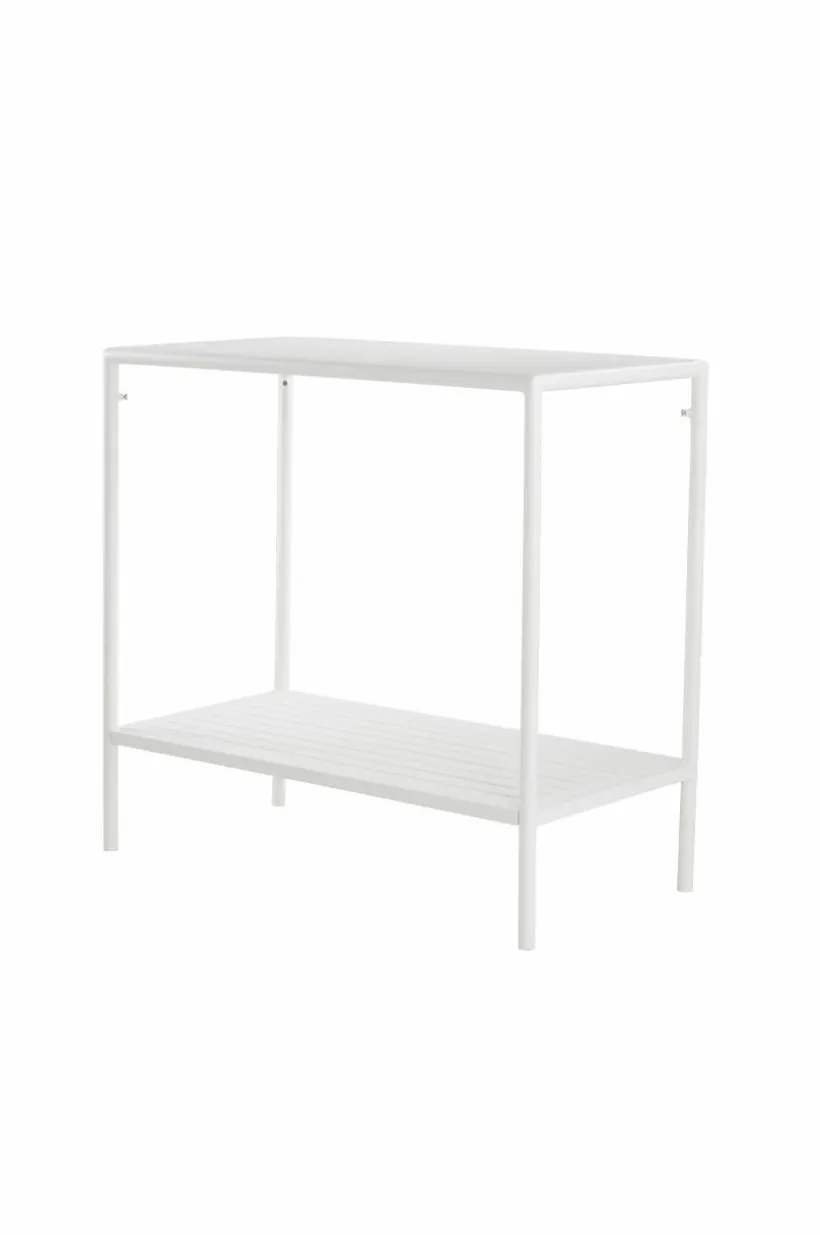 Avlastningsbord av pulverlackerad aluminium med matt yta som inte bländar i solskenet. MENTON tål att stå utomhus och det gör utelivet enklare. Du slipper bära så fort du vill sitta ute. Möbeln är nätt och ger en skön känsla på altanen eller uteplatsen, perfekt intill grillen eller som komplement till uteköket. Bordet har bekväm arbetshöjd och en avlastningshylla under bordsskivan. Låg vikt.