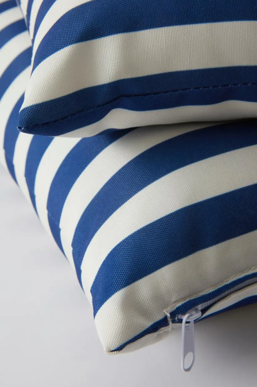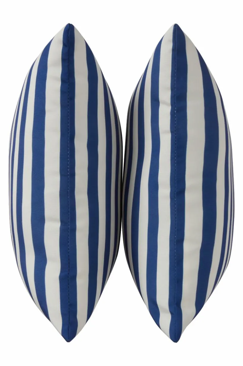 2-pack randiga kuddar till utemöbler. Kuddfodralet är av polyester med vattenavvisande beläggning. Innerkudden har skumfyllning. Kuddfodralet är avtagbart och har dragkedja i nederkanten.