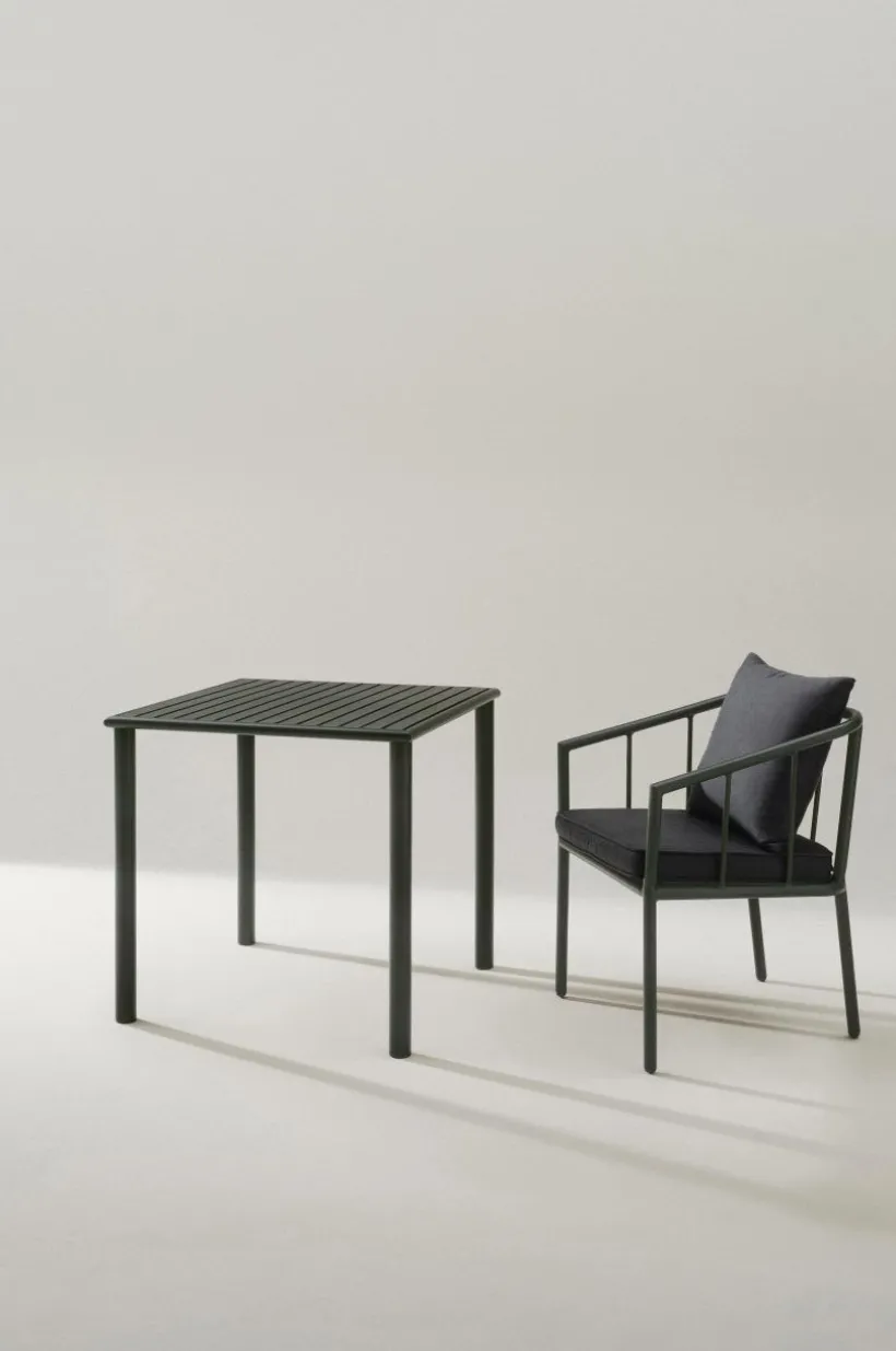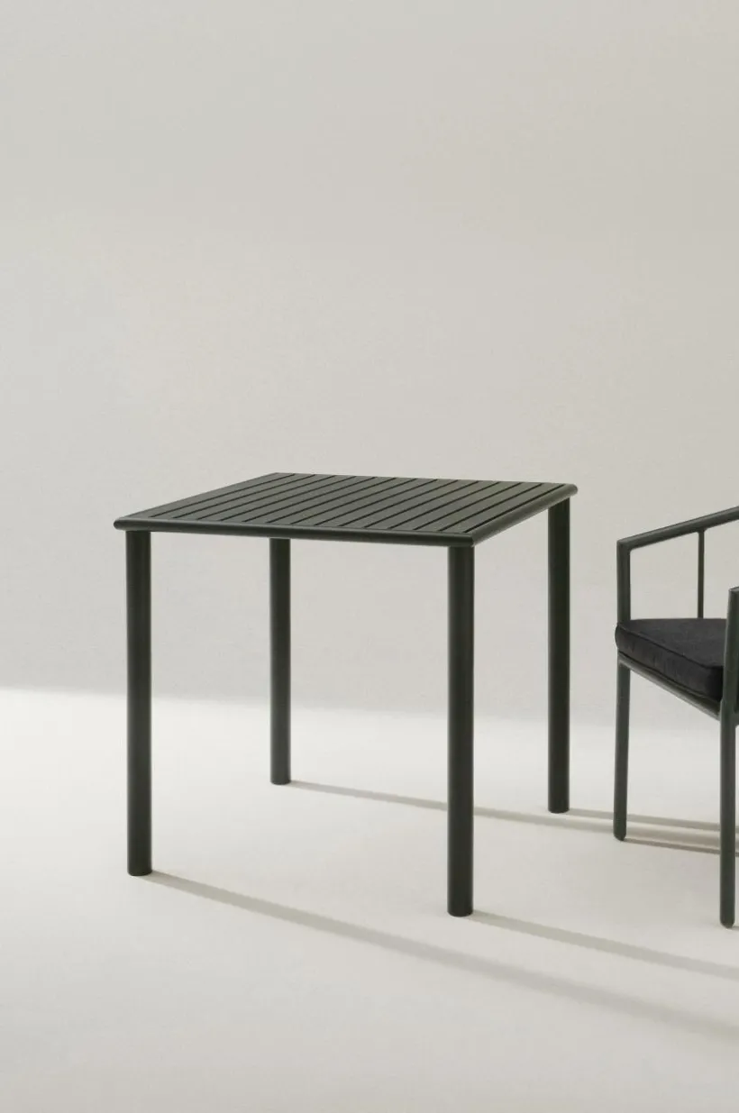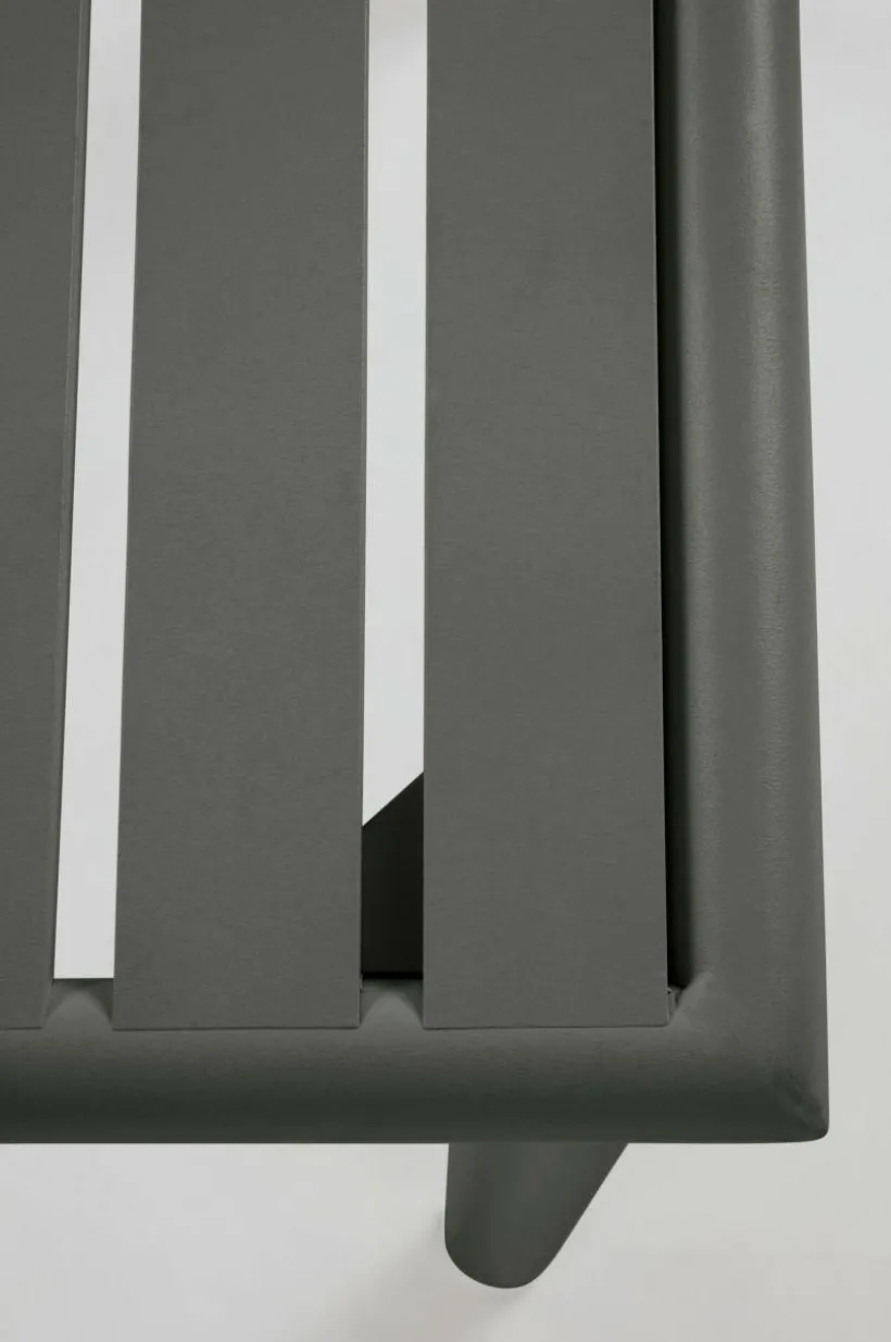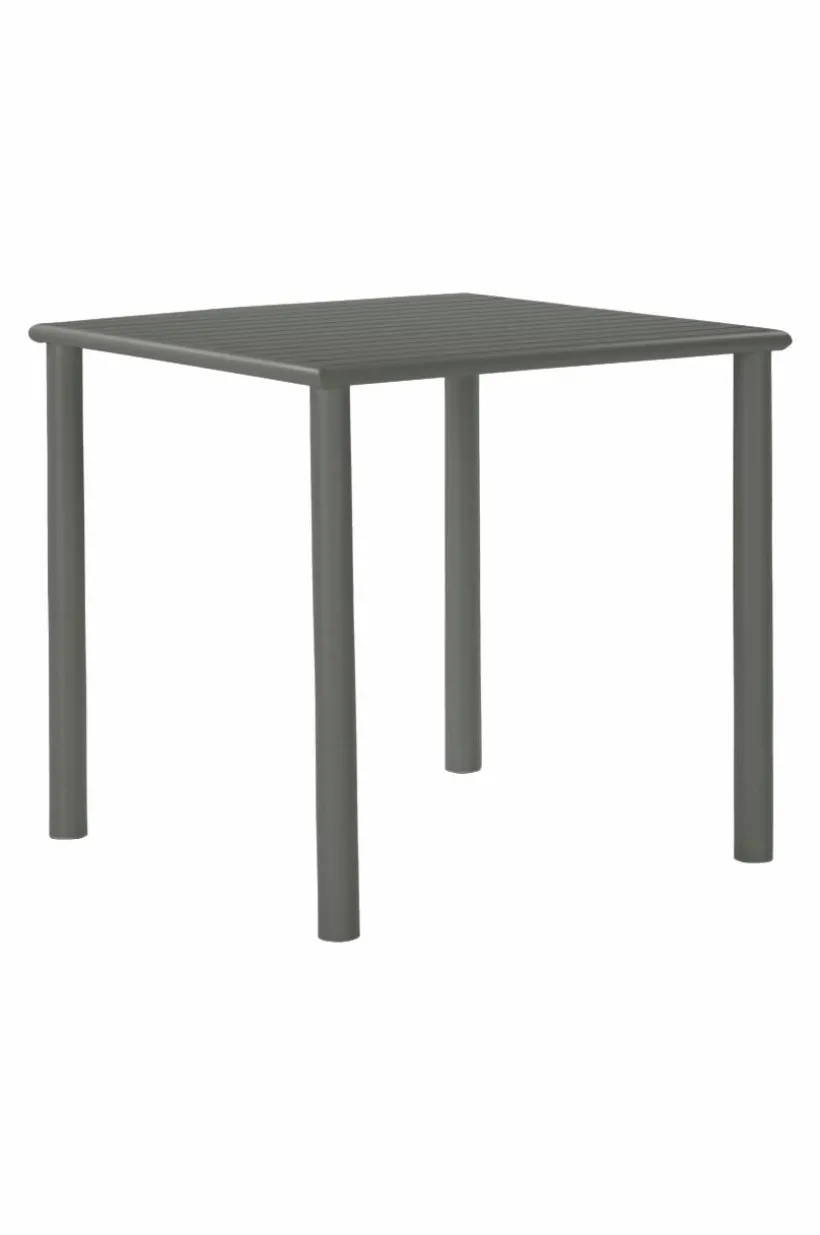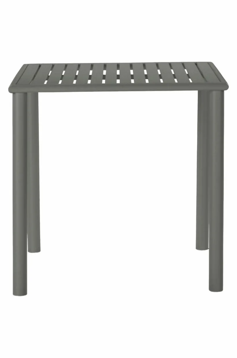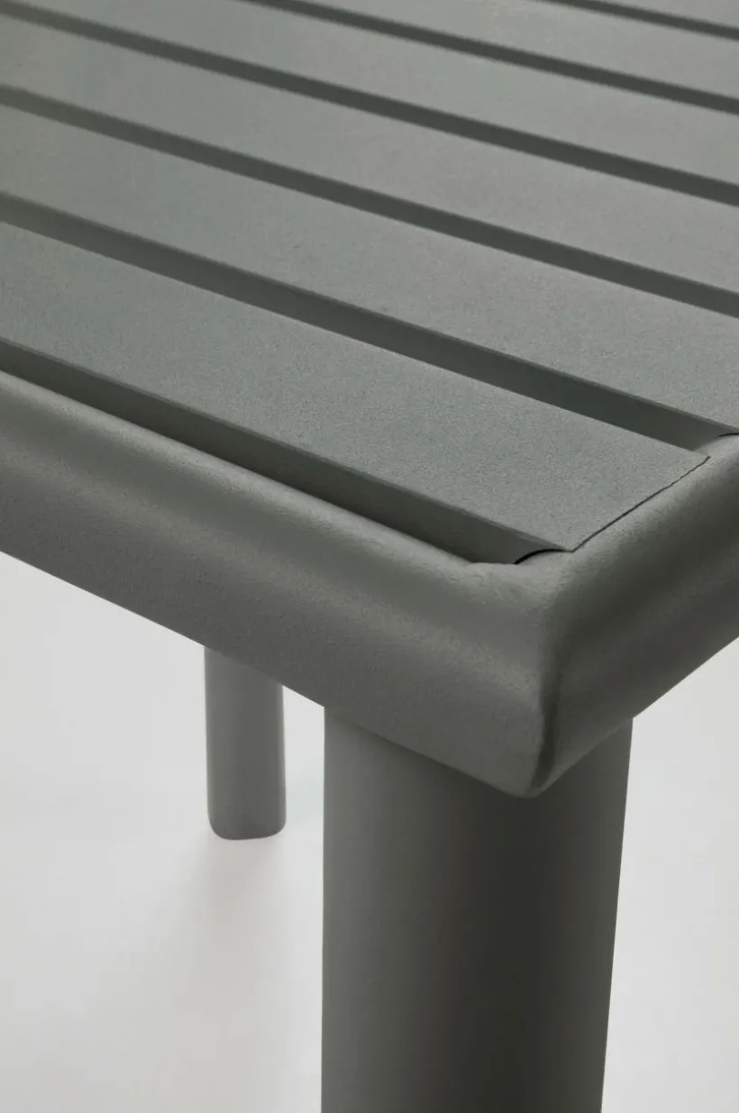 Matbord av pulverlackerad aluminium med matt yta som inte bländar i solskenet. Det är härligt att flytta ut på balkongen eller i trädgården när värmen är här. MENTON tål att stå utomhus och det gör utelivet enklare. Du slipper bära varje gång du vill sitta ute. Aluminium är rostfritt vilket är praktiskt för utemöbler. Möbeln är nätt och den praktiska storleken gör bordet lätt att placera, även på en balkong. Låg vikt.