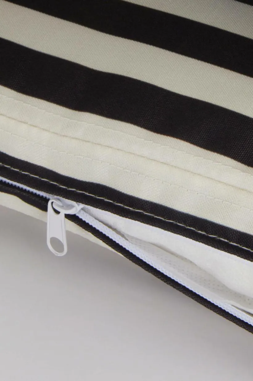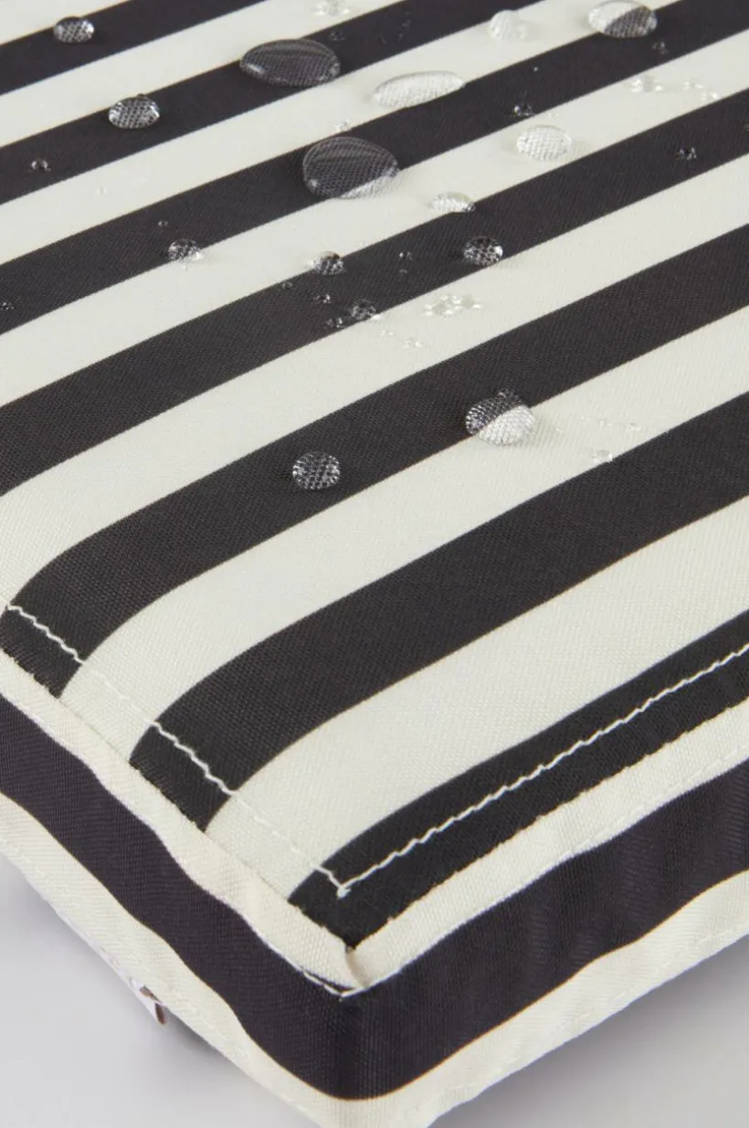 Randig sittdyna till utemöbler. Tyget är av polyester med tryckt mönster och vattenavvisande beläggning. Dynan har skumfyllning. Klädseln har dragkedja och är avtagbar. Tygets slitstyrka 30000 Martindale.