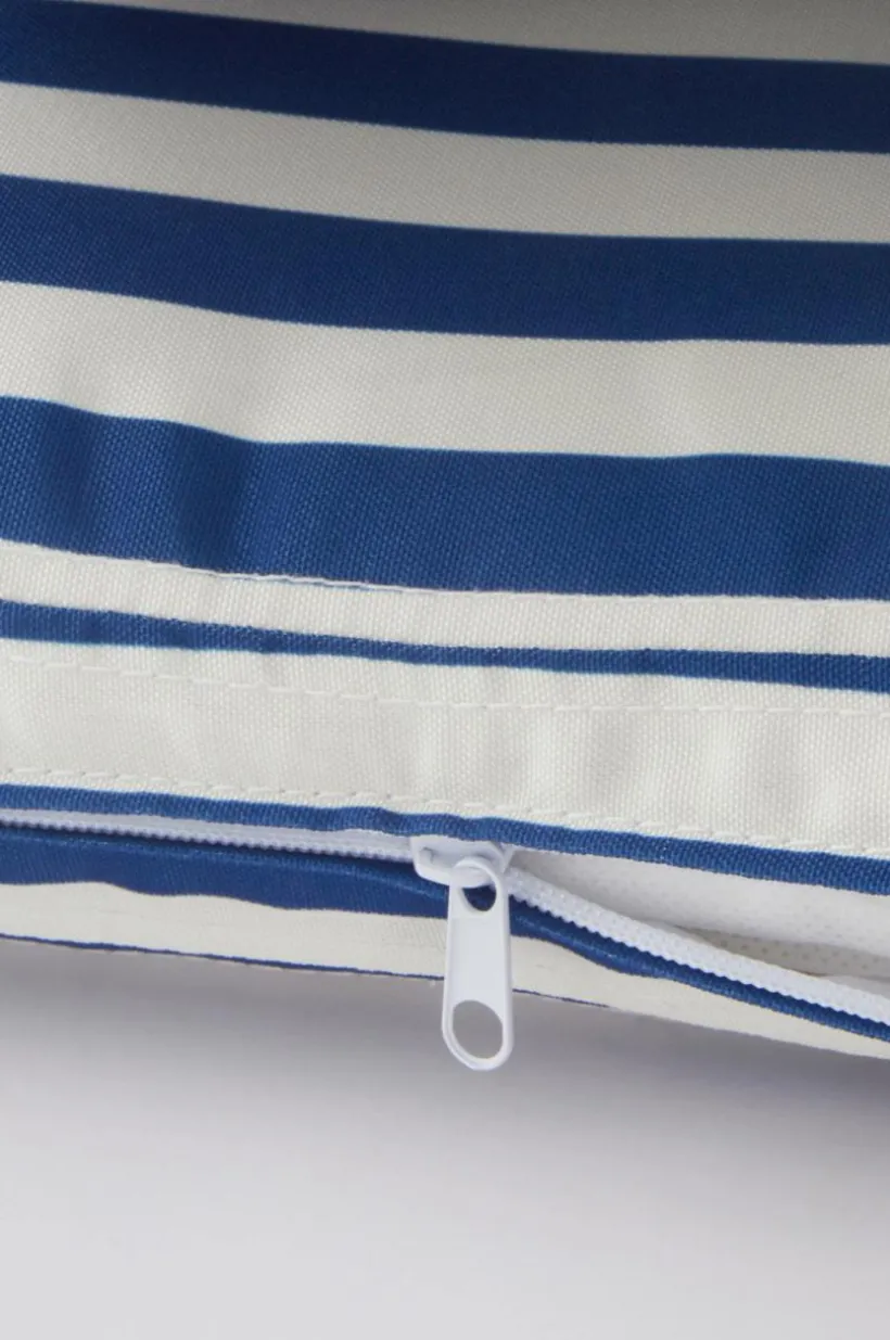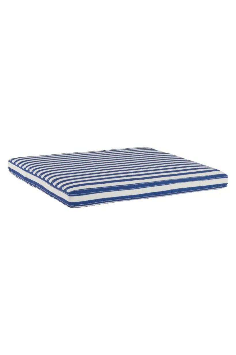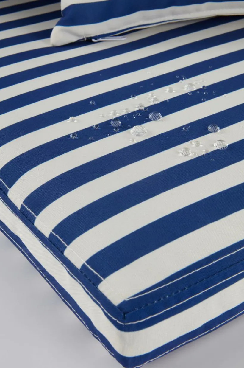 Randig sittdyna till utemöbler. Tyget är av polyester med tryckt mönster och vattenavvisande beläggning. Dynan har skumfyllning. Klädseln har dragkedja och är avtagbar. Tygets slitstyrka 30000 Martindale.