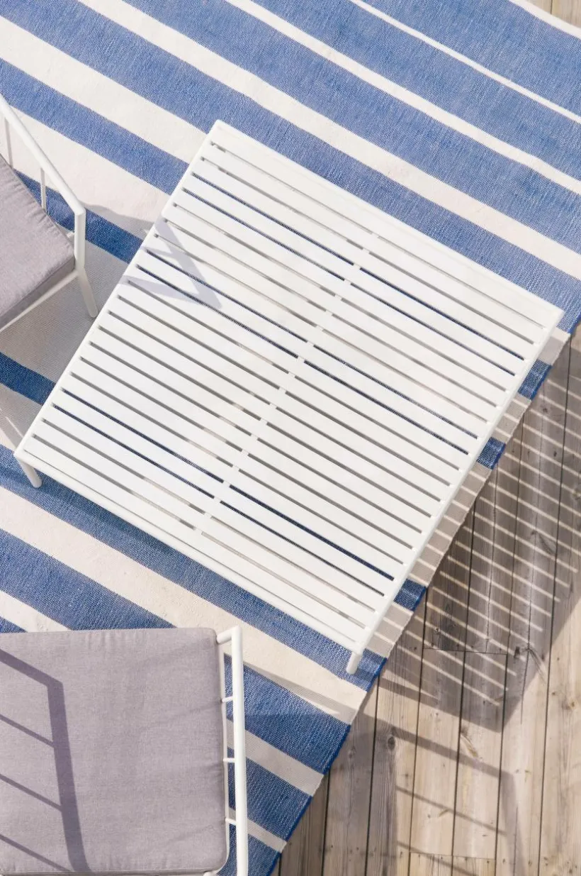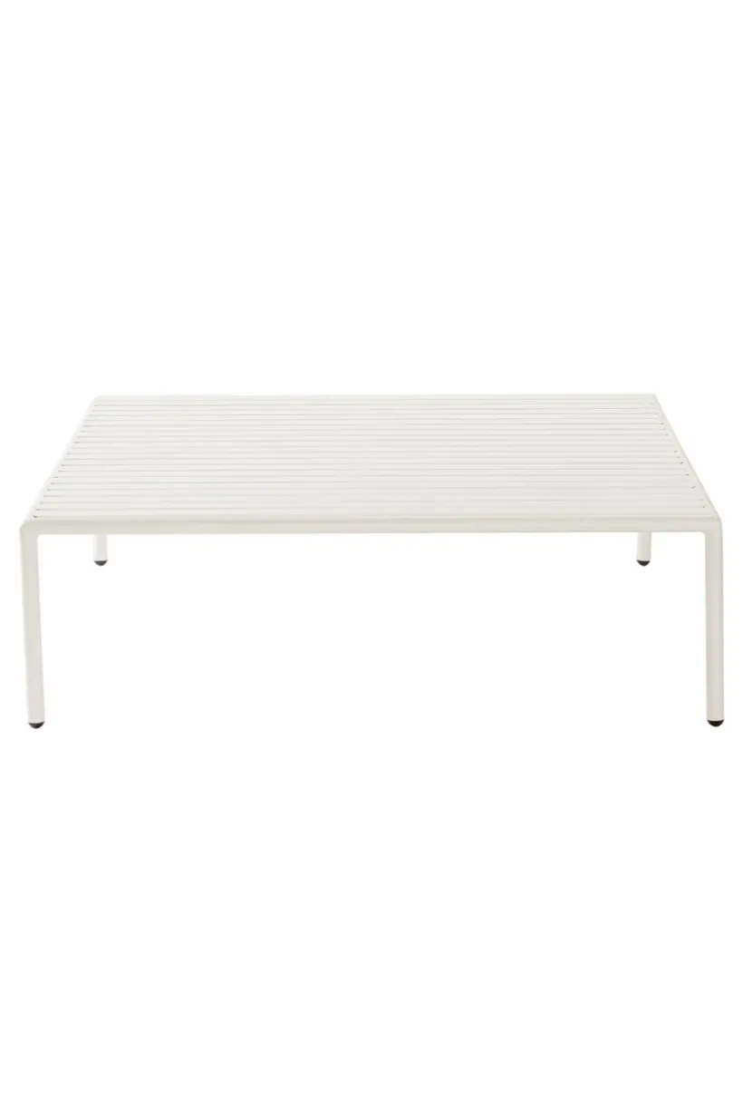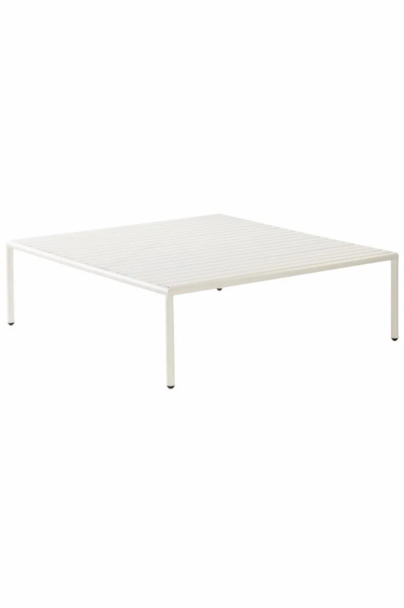 Soffbord av pulverlackerad aluminium med matt yta som inte bländar i solskenet. MENTON tål att stå utomhus och det gör utelivet enklare. Du slipper bära så fort du vill sitta ute. Möbeln är nätt och ger rätt loungekänsla. Låg vikt.