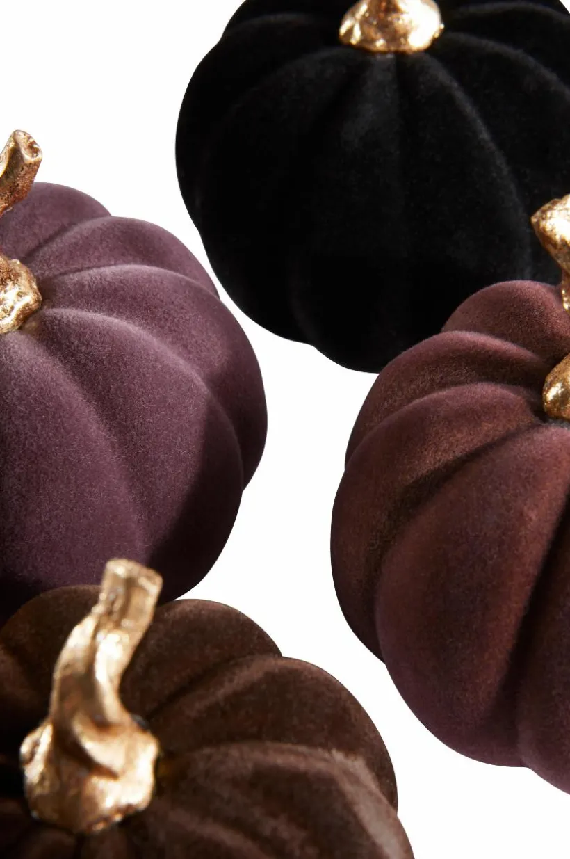 4-pack dekorationspumpor av polyresin med sammetskänsla. Förpacknigen innehåller olika nyanser. Alla har liten guldfärgad stjälk på toppen.