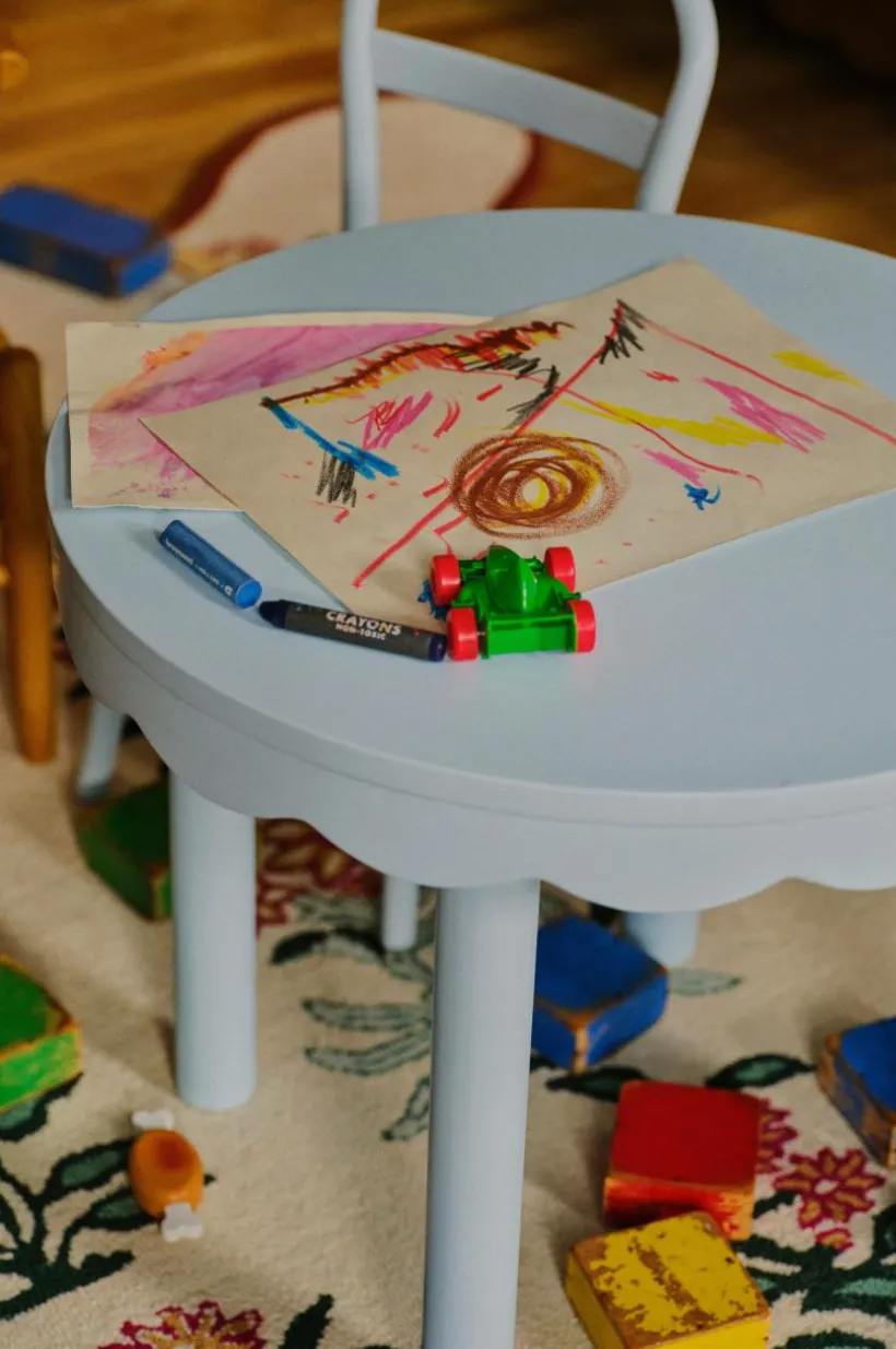 MERRILL MINI är ett runt barnbord som är både lekfullt och smått sagolikt. Allt trä i bordet är FSC-märkt, fyra ben av furu och bordsskiva av MDF med vågad kant runt om. Att sitta och pyssla vid ett lagom litet barnbord är mysigt. Glada färger med härlig vårkänsla ger hopp året runt, färgen på dessa bord är vattenbaserad. Viss montering krävs. Monteringsanvisning medföljer.