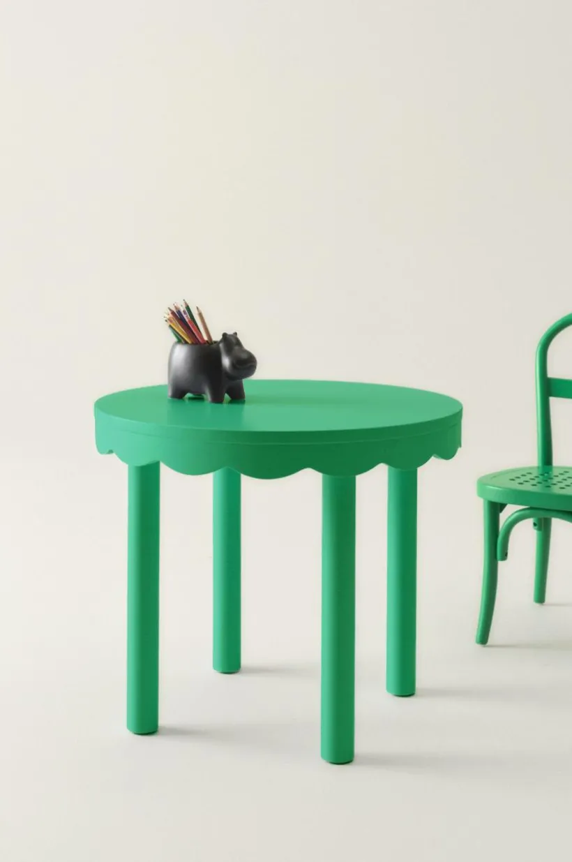 MERRILL MINI är ett runt barnbord som är både lekfullt och smått sagolikt. Allt trä i bordet är FSC-märkt, fyra ben av furu och bordsskiva av MDF med vågad kant runt om. Att sitta och pyssla vid ett lagom litet barnbord är mysigt. Glada färger med härlig vårkänsla ger hopp året runt, färgen på dessa bord är vattenbaserad. Viss montering krävs. Monteringsanvisning medföljer.
