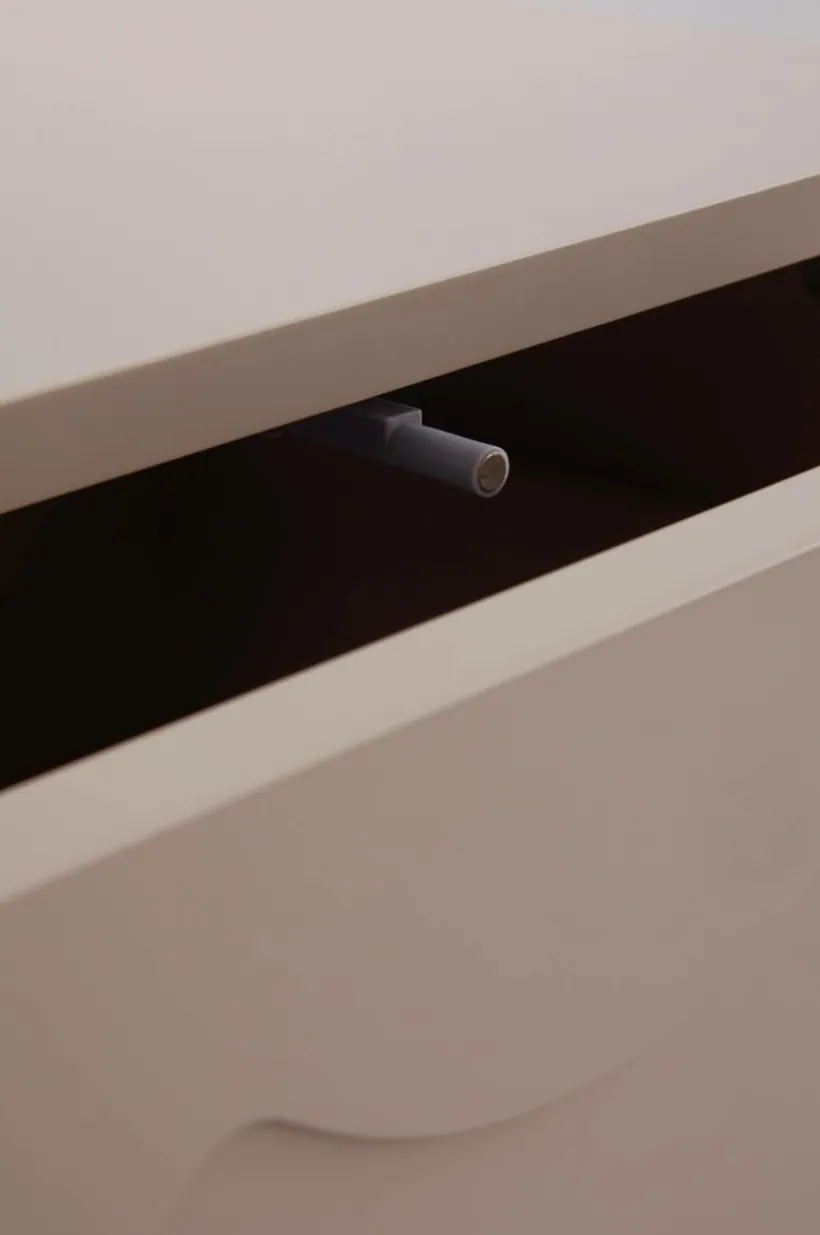 MERRILL MINI, ett lekfullt sängbord perfekt för ditt barns rum. Bordet är tillverkat av MDF och har två praktiska lådor för förvaring av skatter och viktiga föremål. Den eleganta, målade ytan ger ett fräscht intryck som drar blickarna till sig, medan den extra funktionen med väggfäste garanterar stabilitet och sinnesro. MERRILL MINI-bordet, målat med vattenbaserad färg, är verkligen ett viktigt tillskott till alla livfulla, ungdomliga sovrum.