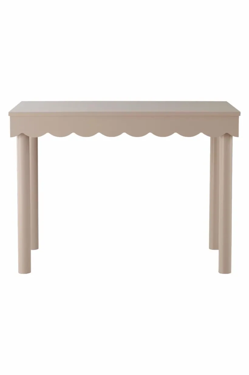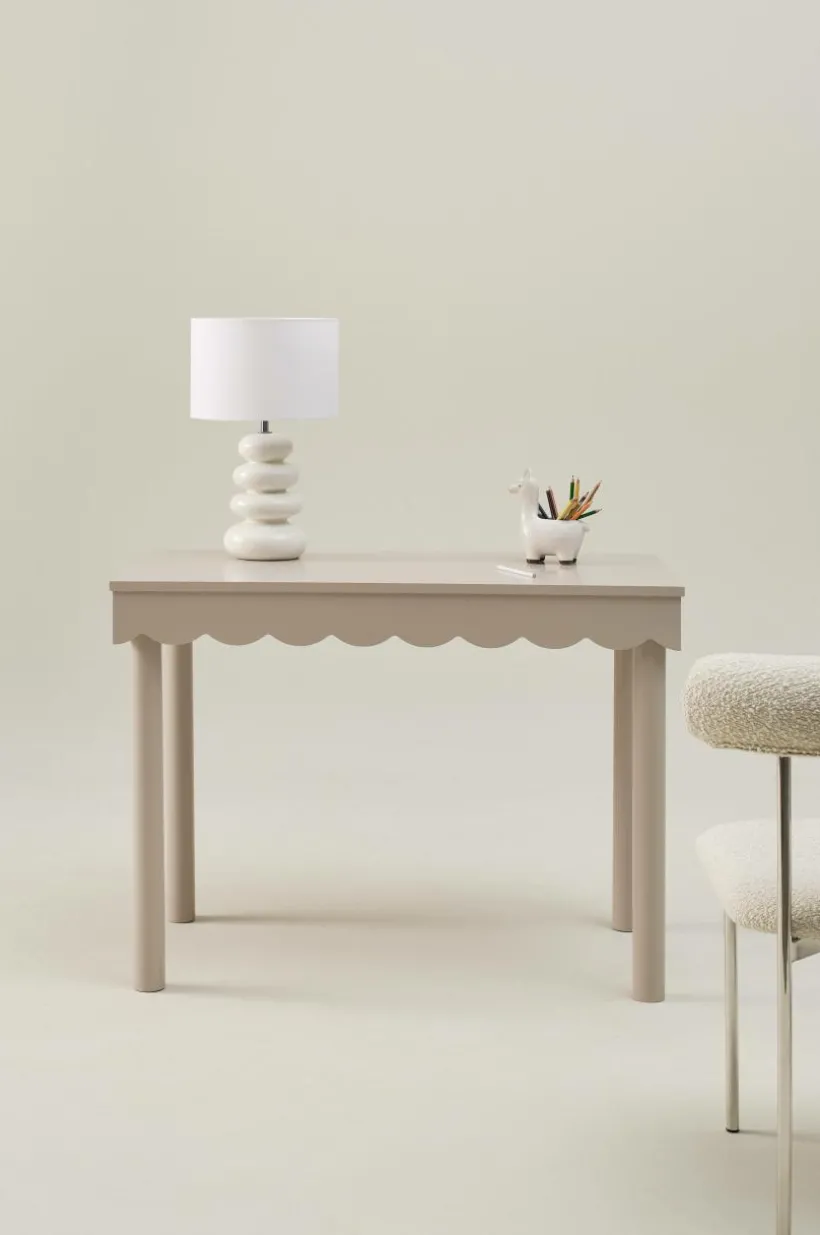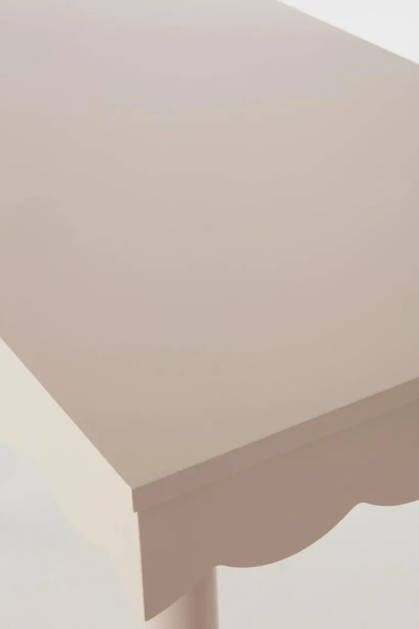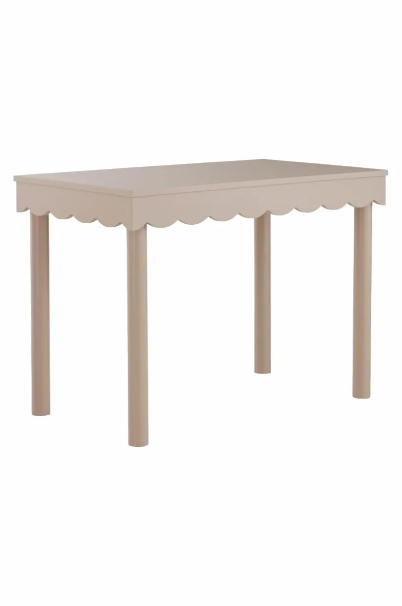 Skrivbord som gör ett statement. Skrivbordet MERRILL MINI är designat för barn och ungdomar. Skrivbordet är tillverkat med en bordsskiva i MDF och ben i furu och är både robust och snyggt. Den skulpterade kanten ger en lekfull touch som barnen kommer att älska. Perfekt för läxor, pyssel eller andra kreativa sysslor. Förhöj ditt barns rum med det eleganta och funktionella MERRILL MINI-skrivbordet.
