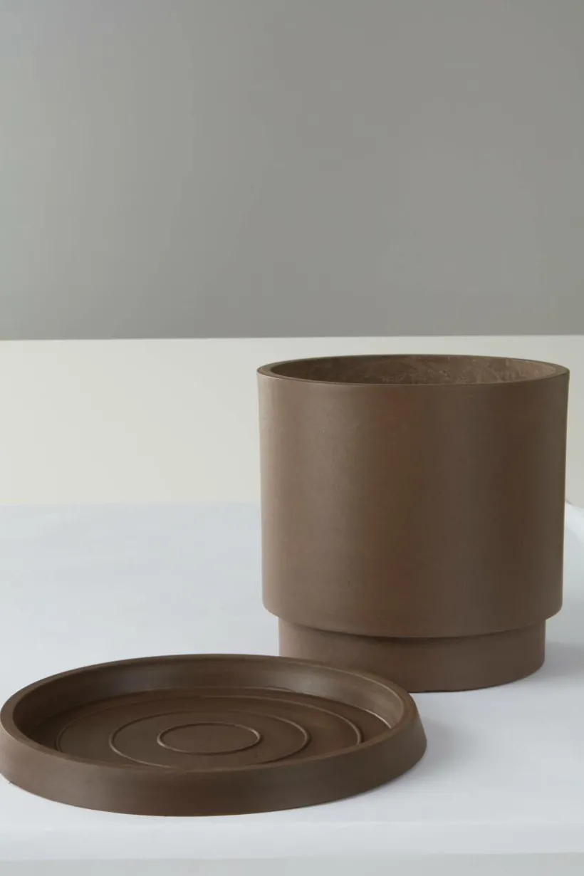 Utomhuskruka MICHELLE förhöjer varje trädgård med sin väderbeständiga stenfinish. Den är tillverkad av återvunnet kompositmaterial och har ett fat som kombinerar funktionalitet med klassisk design. Varje kruka hyllar naturen med sin unika textur och bjuder in till skönhet i din utemiljö. Perfekt för dem som värnar om en tidlös estetik i hemmet.