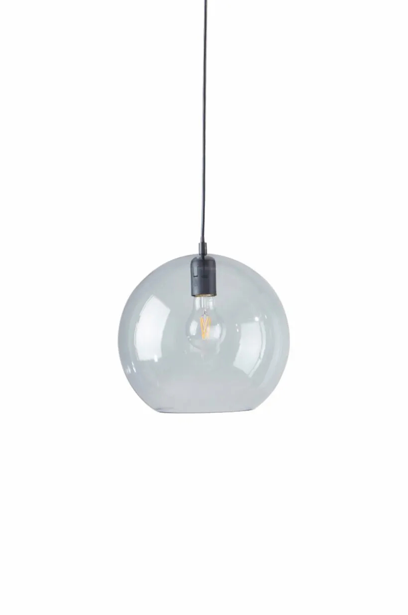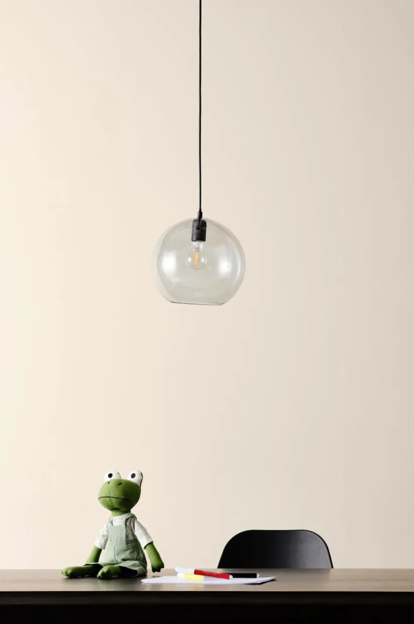Taklampa med fäste av järn och en hängande kupa i färgat glas som sprider ett mysigt sken när lampan lyser. Passar perfekt för att ljusa upp rummet. Svart sladd, sladdlängd 0,85 meter. Takplugg ingår ej p.g.a. nya EU-regler. Den finns att köpa separat och heter THE ROOF takplugg.