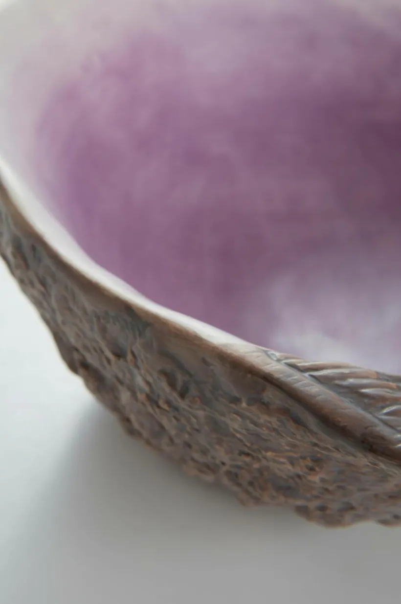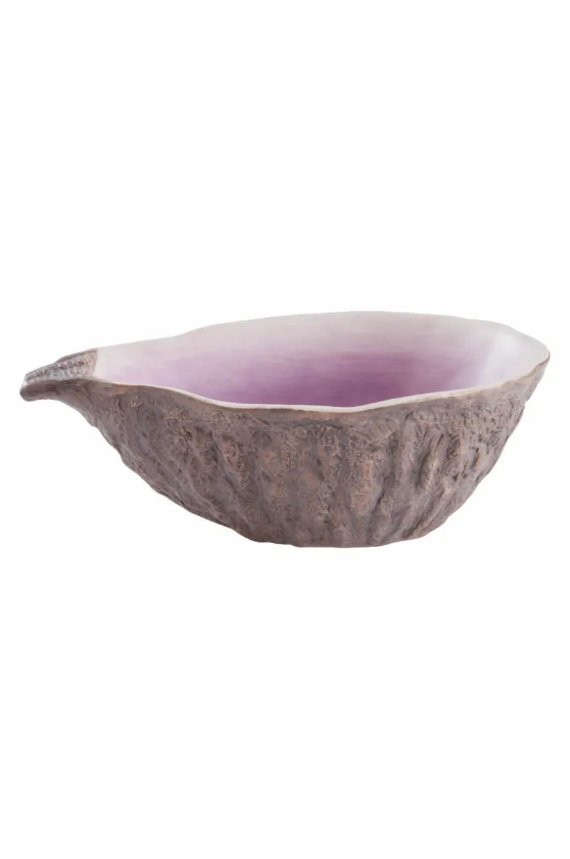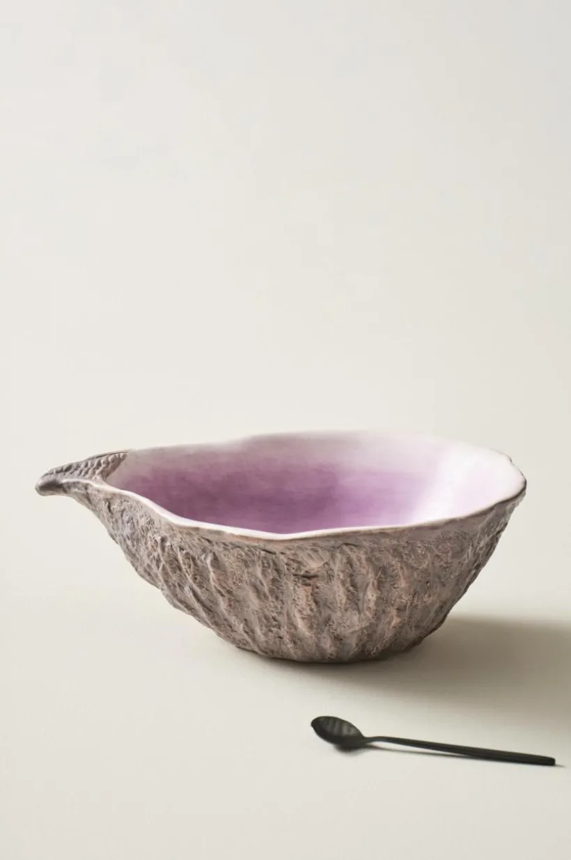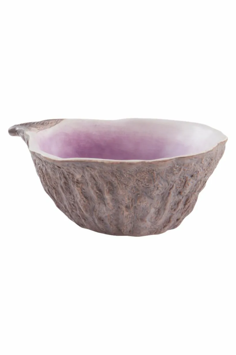 Vacker skål av dolomitporslin. Skålen påminner om ett stort ostron och den matta glasyren går i vackra grå och lila nyanser. Utsidan har fin, lite grövre struktur. MILO gör en härlig räksallad rättvisa och är dessutom fin som prydnadsskål.