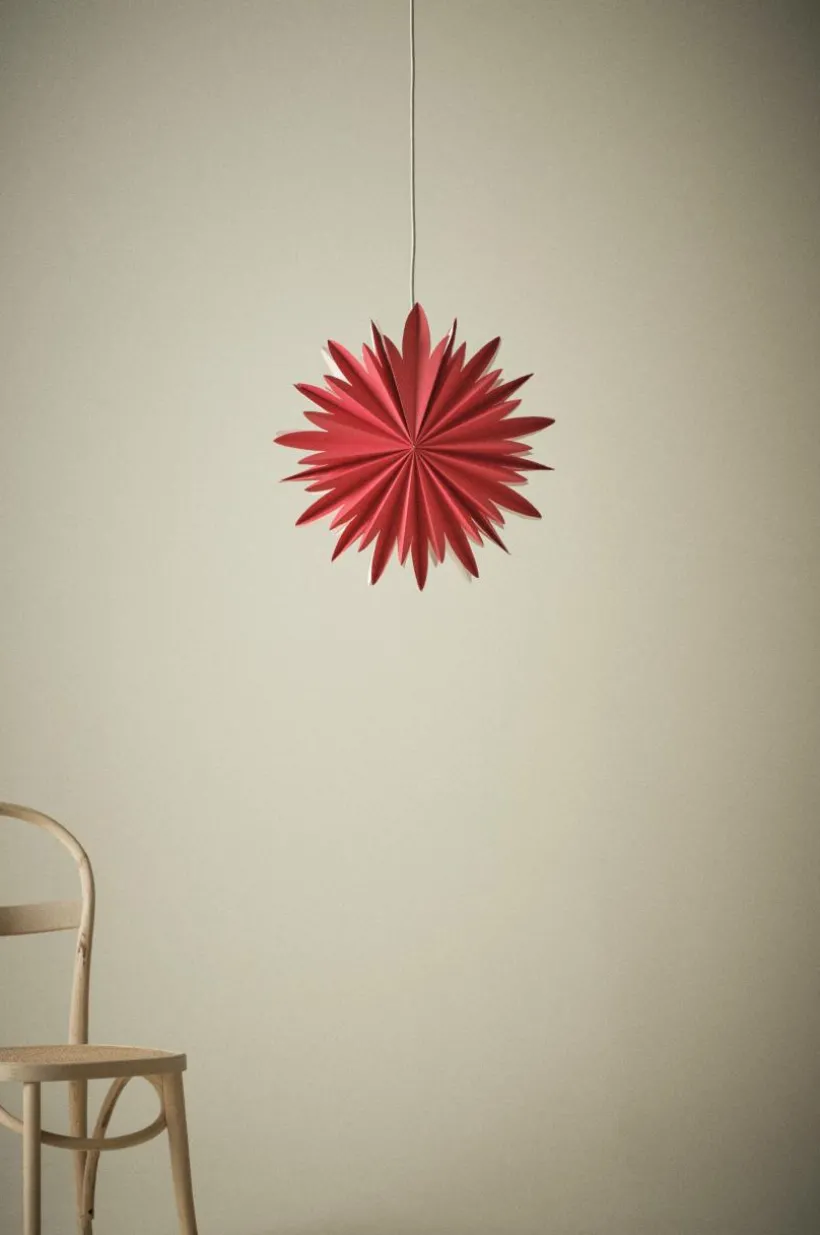 Julstjärna av papper, i vacker form som är en mix mellan en blomma och en stjärna, en stjärna med rundade uddar. MIMOSA är mysig och lyser upp ditt fönster i vintermörkret. Lamphållare med vit plastsladd ingår. Viss montering krävs. Monteringsanvisning medföljer.
