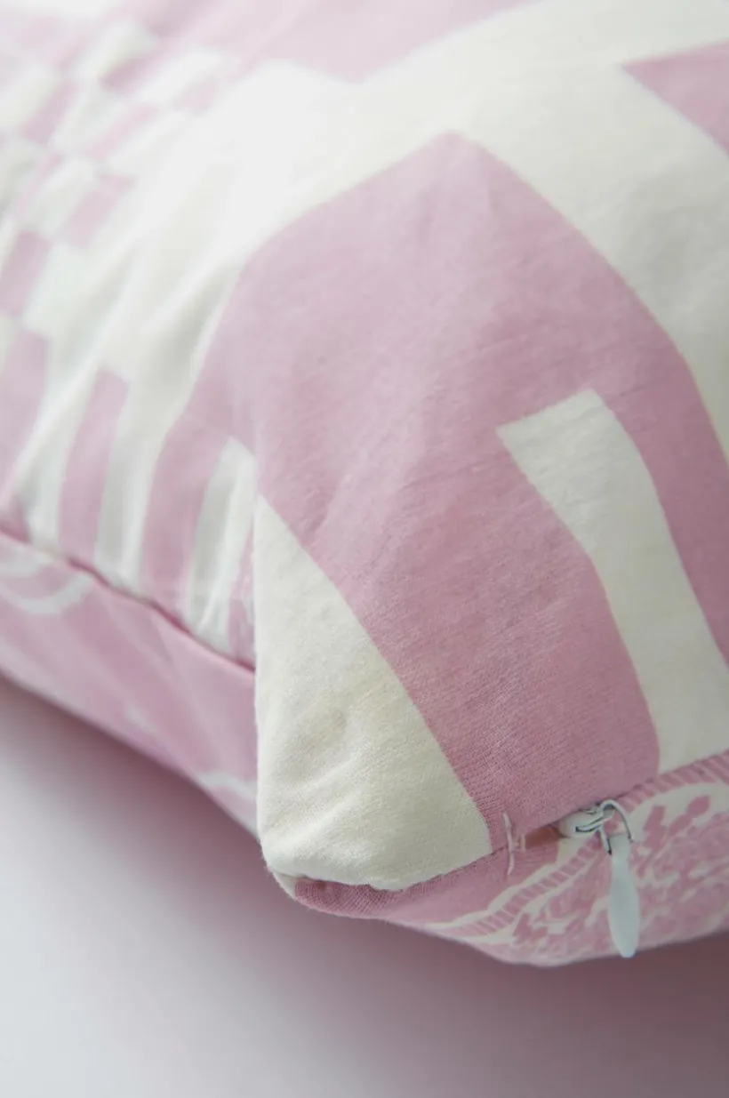 1-pack kuddfodral av härligt skön bomull med tryckt mönster som designats av Maria Carlberg. Kuddfodralet är vändbart, ena sidan har fint grafiskt mönster som skapats av fyrkanter och den andra sidan har ett lite mer romantiskt paisleymönster i vitt på färgad botten. Dold dragkedja i nederkant.