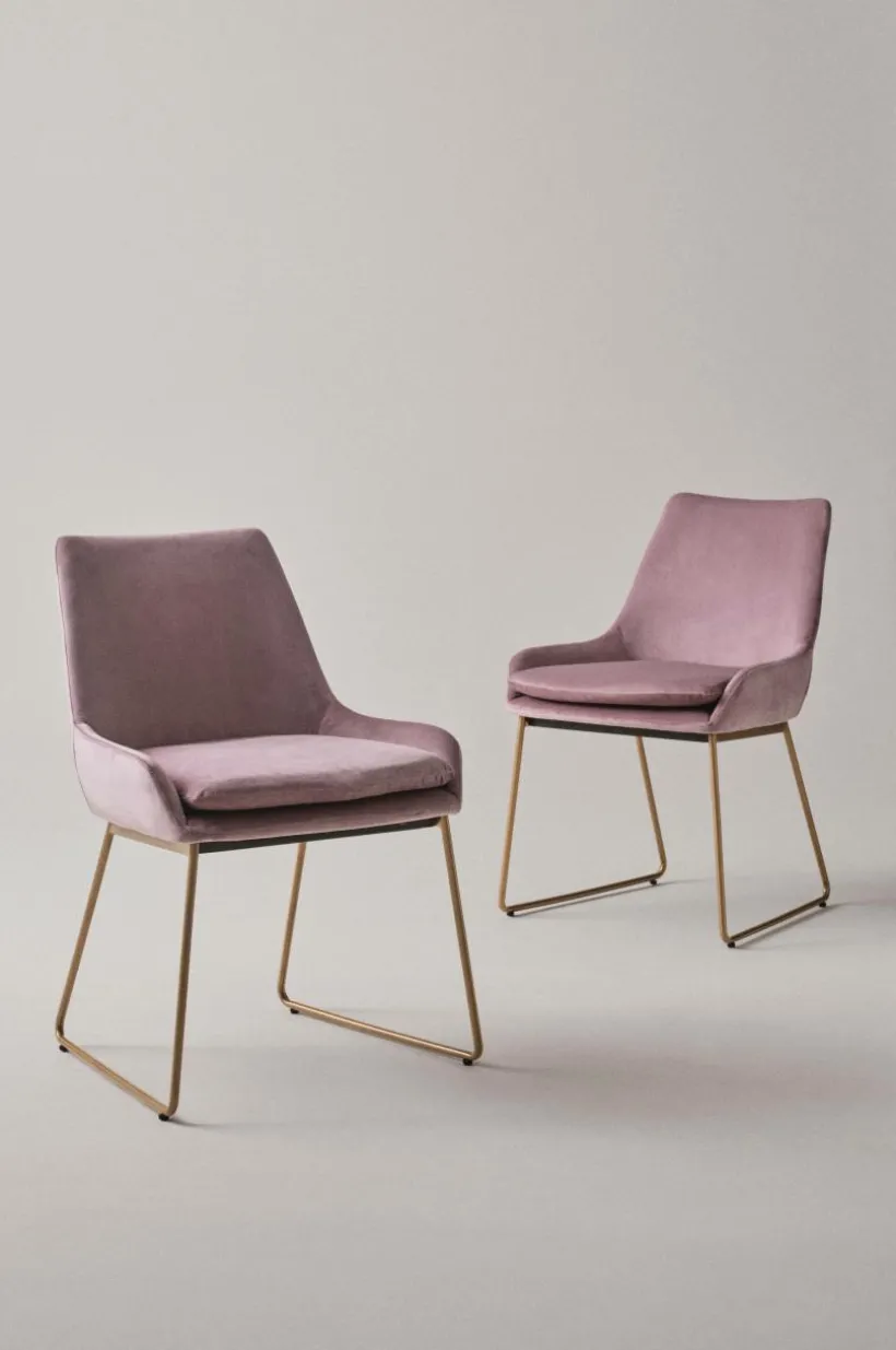 2-pack stolar med sammetsklädsel som ger en lyxig och ombonad känsla. Sidor och rygg är mjukstoppade och stolen har en lös sittdyna. Benen är av rostfritt stål i mässing eller svart pulverlackering. Den stilrena formen gör att stolen passar in i många hem och i olika rum. Tygets slitstyrka är på 28000 Martindale. Viss montering krävs. Monteringsanvisning medföljer.