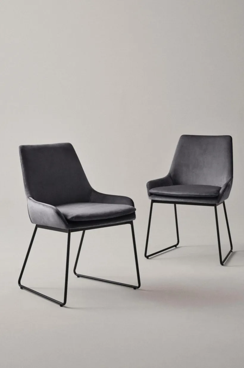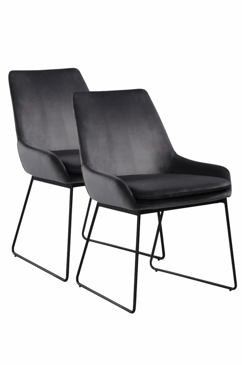 2-pack stolar med sammetsklädsel som ger en lyxig och ombonad känsla. Sidor och rygg är mjukstoppade och stolen har en lös sittdyna. Benen är av rostfritt stål i mässing eller svart pulverlackering. Den stilrena formen gör att stolen passar in i många hem och i olika rum. Tygets slitstyrka är på 28000 Martindale. Viss montering krävs. Monteringsanvisning medföljer.