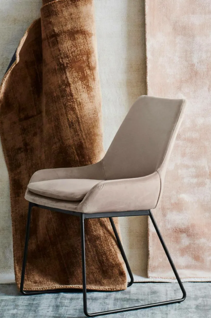 2-pack stolar med sammetsklädsel som ger en lyxig och ombonad känsla. Sidor och rygg är mjukstoppade och stolen har en lös sittdyna. Benen är av rostfritt stål i mässing eller svart pulverlackering. Den stilrena formen gör att stolen passar in i många hem och i olika rum. Tygets slitstyrka är på 28000 Martindale. Viss montering krävs. Monteringsanvisning medföljer.
