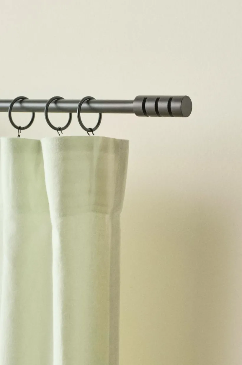Gardinstång med stång och hållare av järn och ändknoppar av formgjuten zinklegering. Kirsch MIST är i klassisk och tidlös design. Gardinstången har reglerbar bredd så att du inte behöver ha exakt standardmått på ditt fönster. Reglerbara hållare gör att du själv kan ställa in väggavståndet 10-15 cm, på så vis kan gardinen hänga fritt och slipper vila mot fönsterbrädan. Setet är komplett med 1 reglerbar gardinstång, 2 änddekorer, 2 reglerbara väggfästen, plugg och skruv. Observera att det alltid är underlaget som bestämmer vilken typ av infästning som är bäst lämpad för montering.