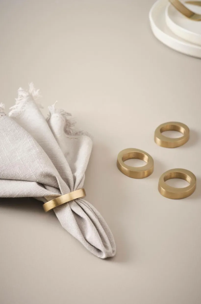 4-pack servettringar av mässing med borstad finish. MOANA är oval och charmigt oregelbunden i formen. En servettring som ger din dukning en elegant framtoning.