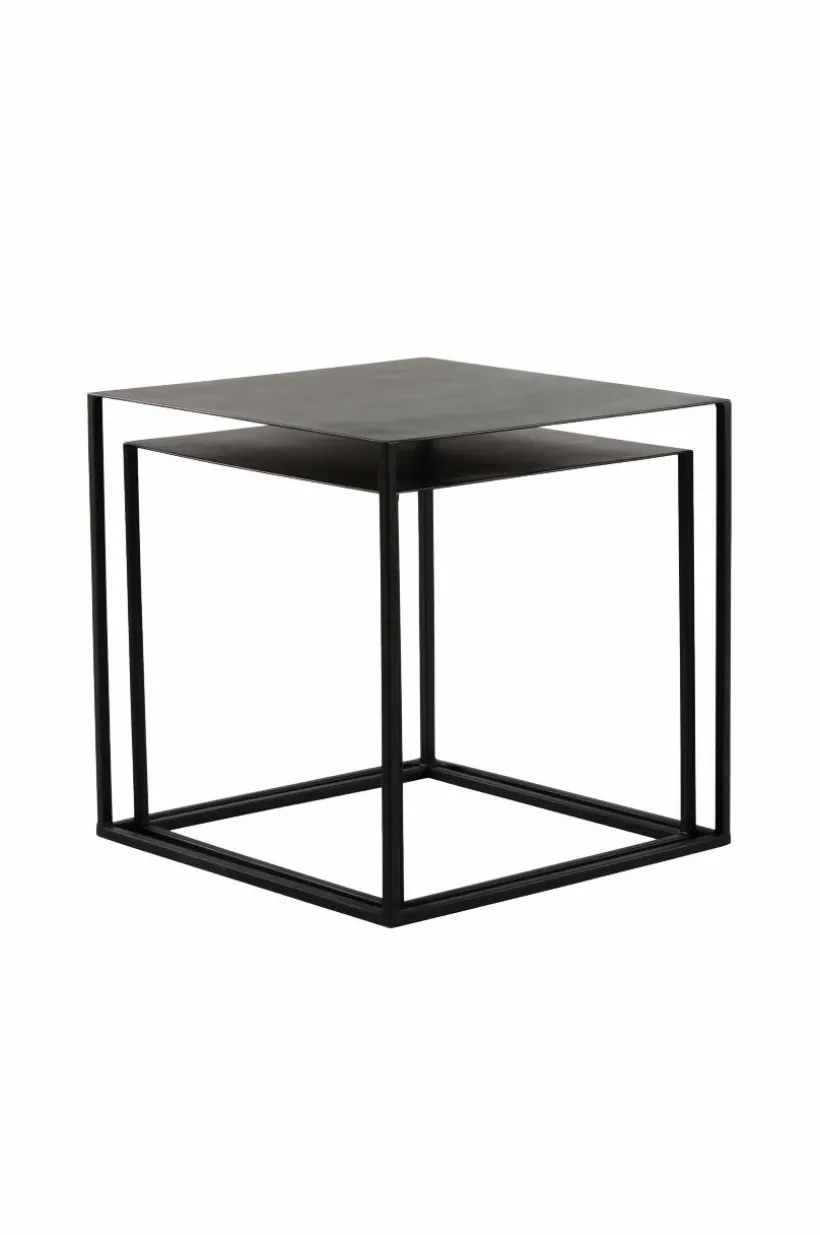 2-pack kubformade sidobord helt av järn i enkel och rak modell. De passar lika bra i en lite ruff, industriell stil som i den mer sofistikerade eller romantiska. Lätt att placera och lätt att möblera. Om utrymmet i rummet inte räcker till kan du placera det lilla bordet under det lite större. Borden kan även placeras i olika rum och flexibiliteten ger dig frihet i din möblering.