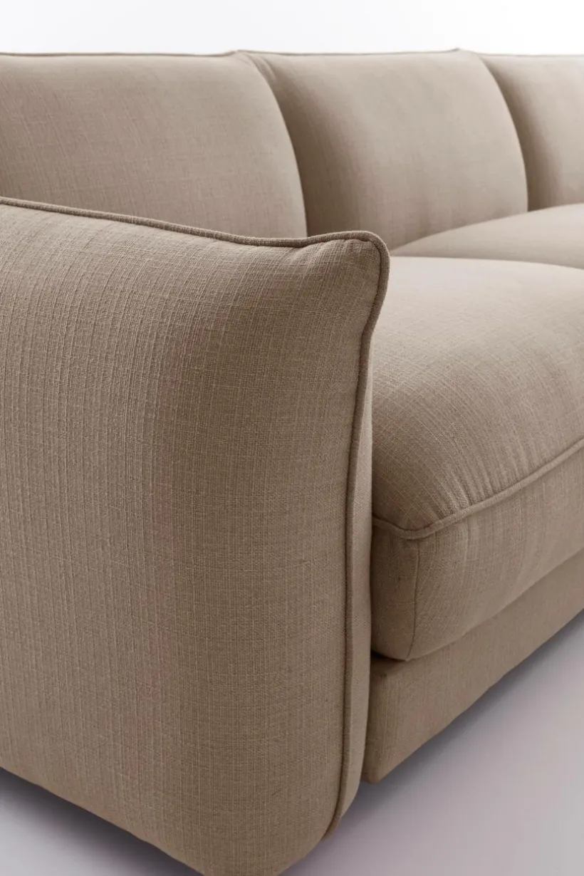Rymlig 3-sitssoffa med stora, fylliga plymåer. Designen är både attraktiv och avslappnad med sin mjuka, inbjudande klädsel som har härlig linnekänsla och är av polyester/polyamid. Tyget är mycket slitstarkt med Martindale på 40000. Stommen är av massiv furu tillsammans med plywood. MOLTON har god sittkomfort tack vare sin fantastiska uppbyggnad av kallskum och zickzackfjädring. En härlig soffa som du gärna slappar i hela dagen. Det är nämligen ingen konst att tillbringa några timmar i den och göra absolut ingenting. Mys tillsammans med familjen eller bred ut dig ensam!