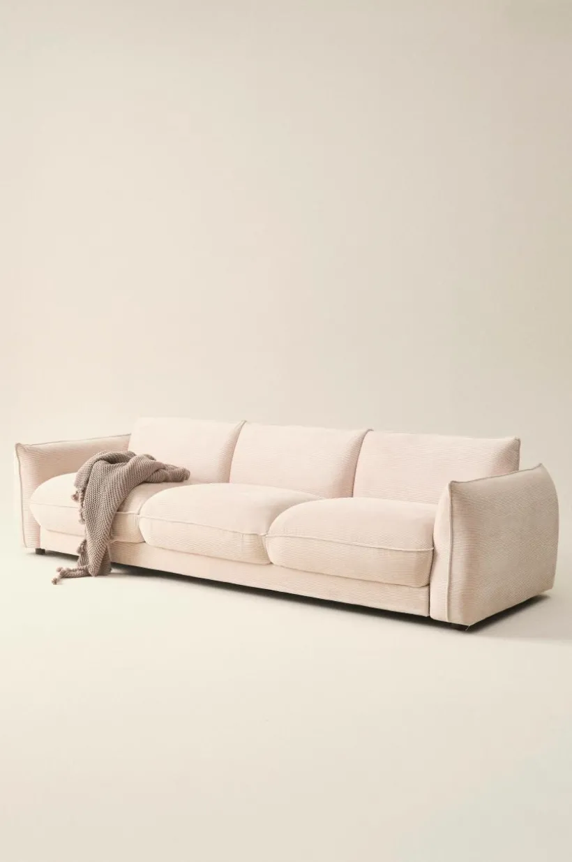 Rymlig 3-sitssoffa med stora, fylliga plymåer. Designen är både attraktiv och avslappnad med sin mjuka, inbjudande klädsel i bredspårig manchester och stabil insida av plywood. MOLTON har god sittkomfort tack vare sin fantastiska uppbyggnad av kallskum och zickzackfjädring. En härlig soffa som du gärna slappar i hela dagen. Det är nämligen ingen konst att tillbringa några timmar i den och göra absolut ingenting. Mys tillsammans med familjen eller bred ut dig ensam! Manchestertyget är mycket tåligt med en slitstyrka på 100000 Martindale.