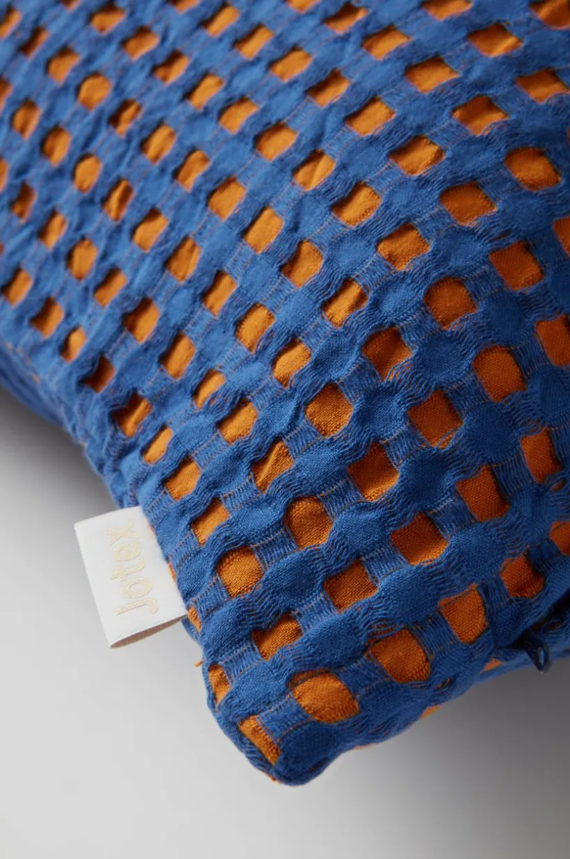 1-pack kuddfodral i skön bomullskvalité som är plaggtvättad, vilket gör det extra mjukt. Det garnfärgade rutmönstret som uppstår av den speciella vävtekniken är effektfullt och tyget får en våfflad struktur. Dold dragkedja. Tygets gramvikt 140 g/m².