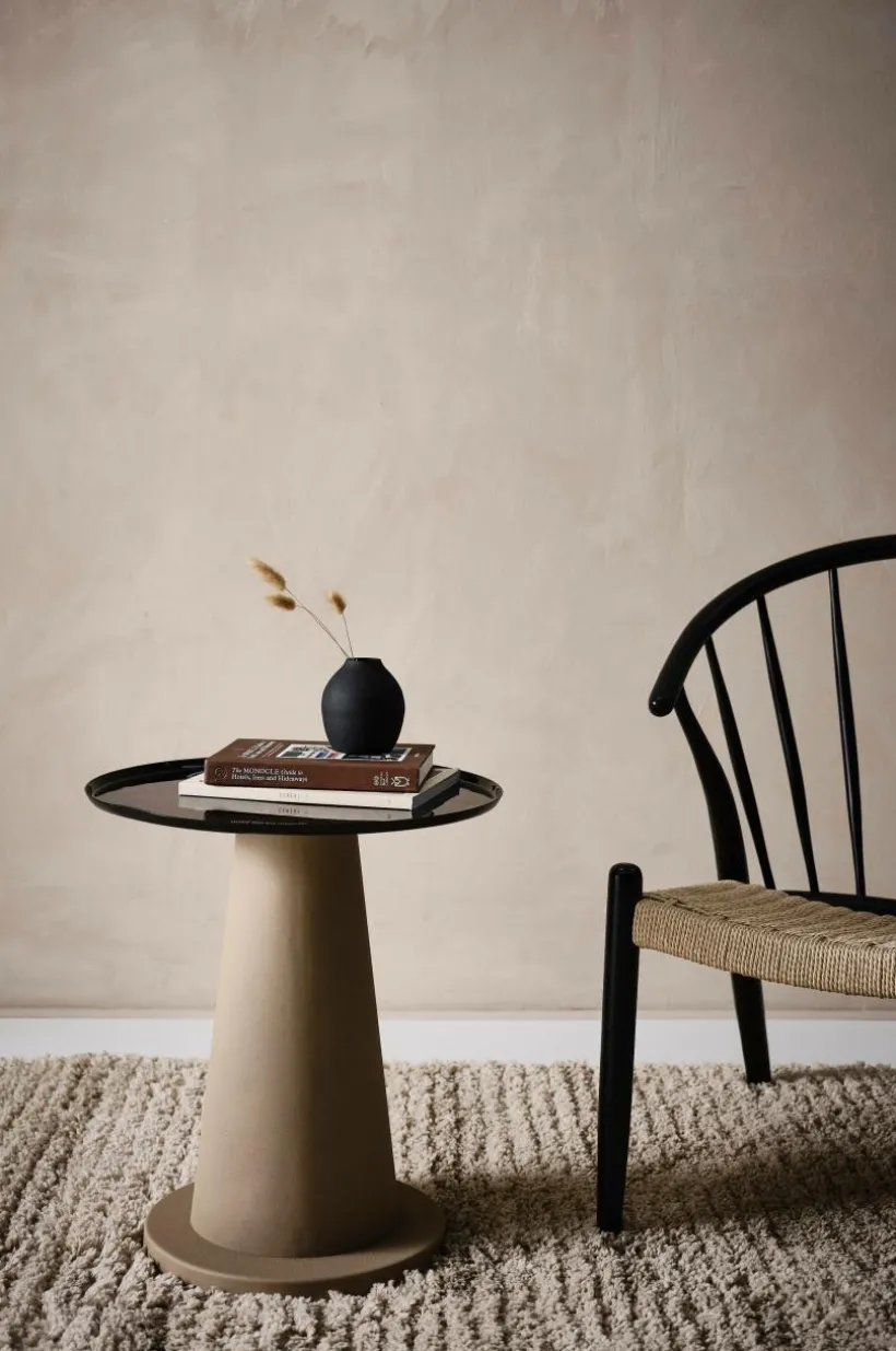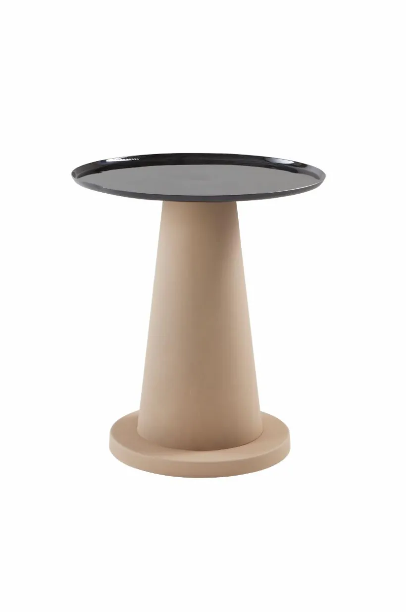 Sidobord av metall med svartlackad bordsskiva. MONTEVERDE är ett unikt sidobord med en spännande form som blir en snygg detalj i ditt hem.