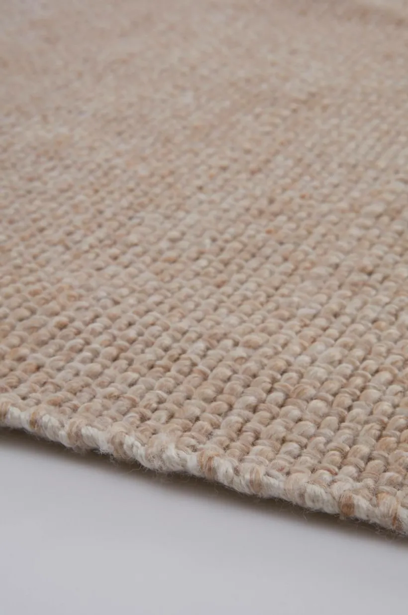 Slätvävd matta som är handvävd i garn av återvunnen polyester. Vävtekniken ger fin, lite grövre struktur och garnet har melerad effekt. Den tvinnade fransen följer mattans färger. Hantverket gör varje matta unik. Mattan är behaglig att gå på och har alla egenskaper som en inomhusmatta ska ha, och den kan även användas utomhus. Den tål att bli blöt utan att mögla, en fantastisk fördel hos materialet. Franslängd 5 cm. Tjocklek 0,7 cm. 2300 g/m².